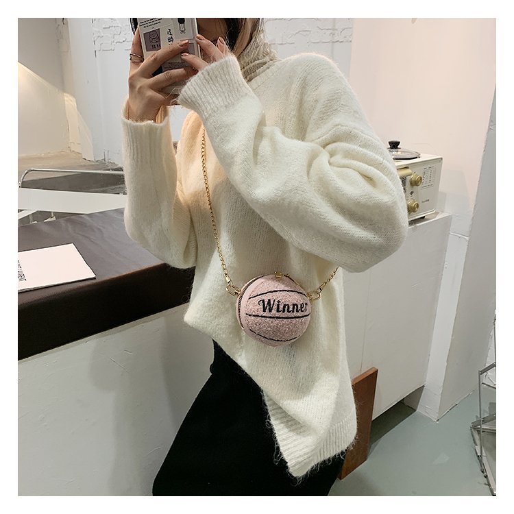 Style: Women's Messenger BagFabric texture: plushBag shape: roundOpening method: zipperPattern: LettersColor: yellow, black, pink, beige, pink, brownSize: 110*90*90mm