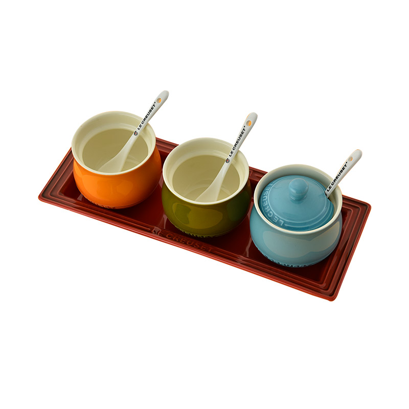 Product Information:Material: CeramicKit type: 4 piecesApplicable space: kitchenStyle: perforated coverColor: colorSize Information40*38*26cm PackageCeramic seasoning jar*1 Seasoning jar*3 spoon*3 tray*1