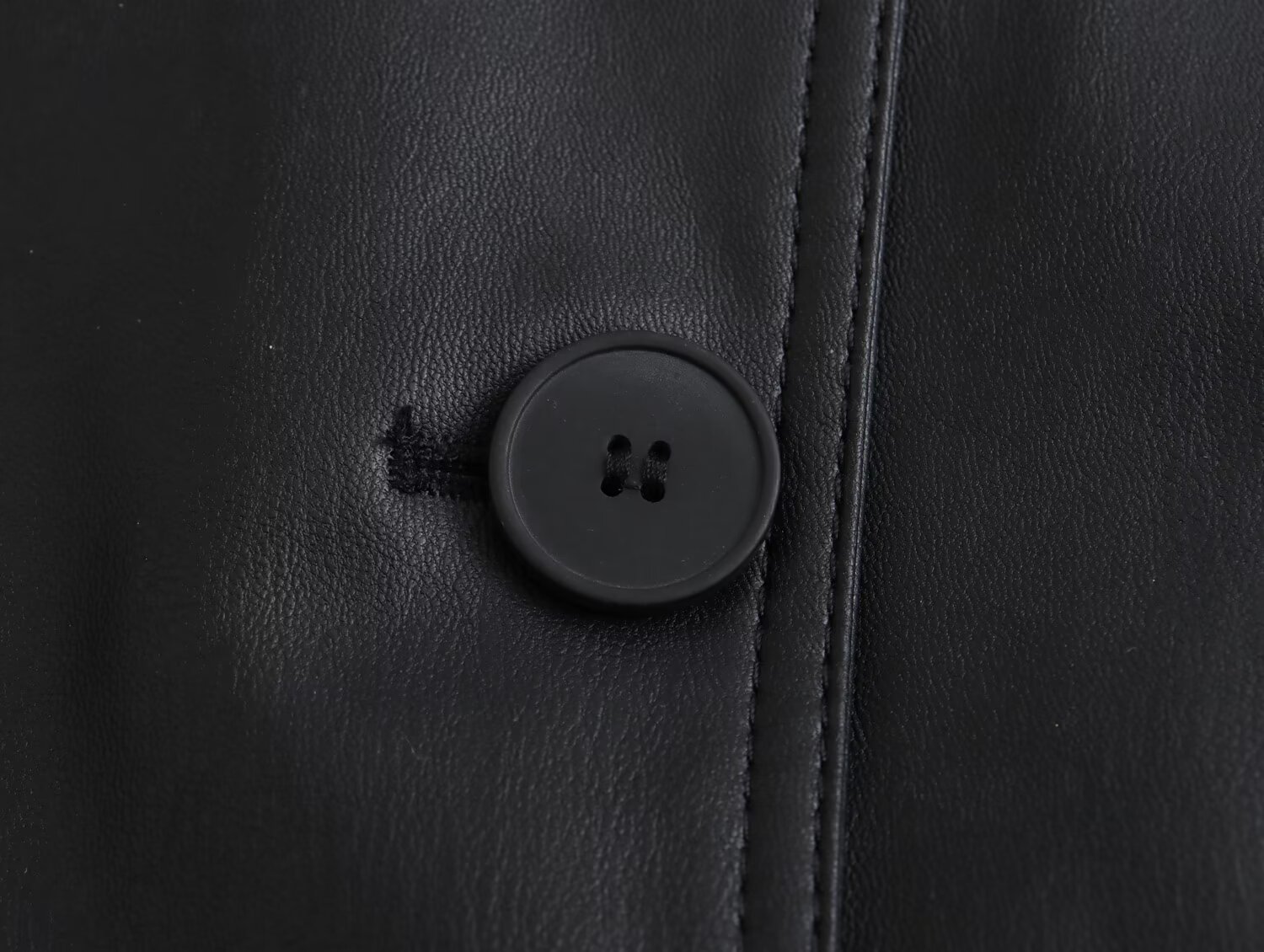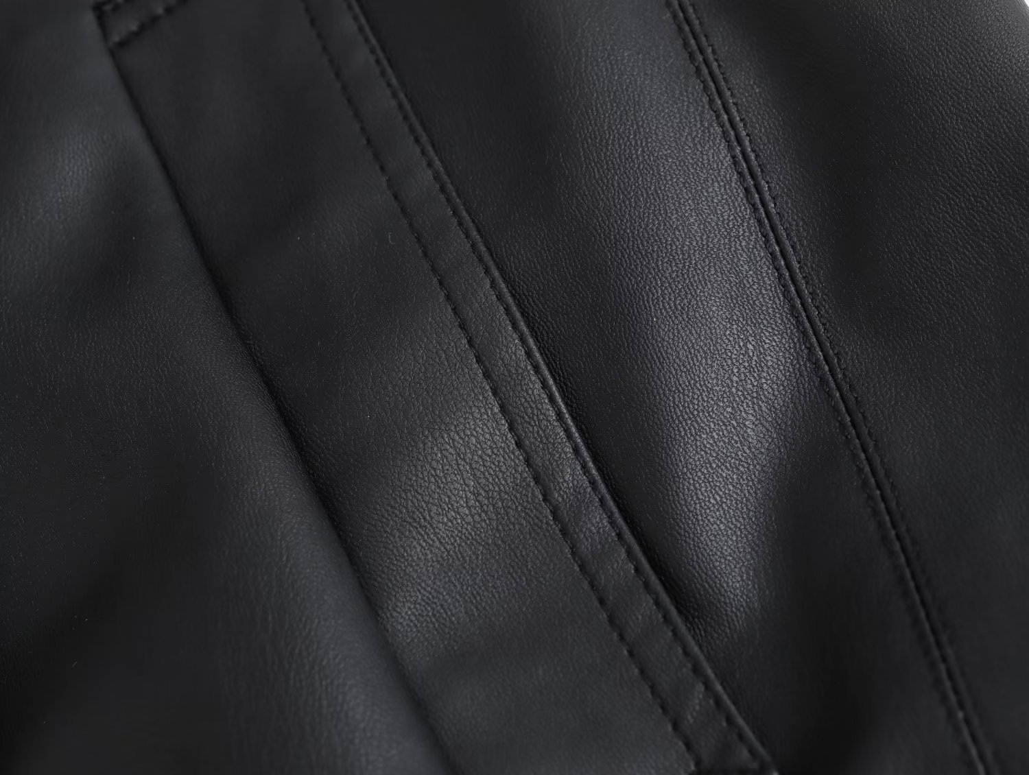 Product information: Fabric name: imitation leather Color: Black Sleeve type: regular sleeve Main fabric composition: Polyester Size: XS,S,M,L Sleeve length: long sleeve