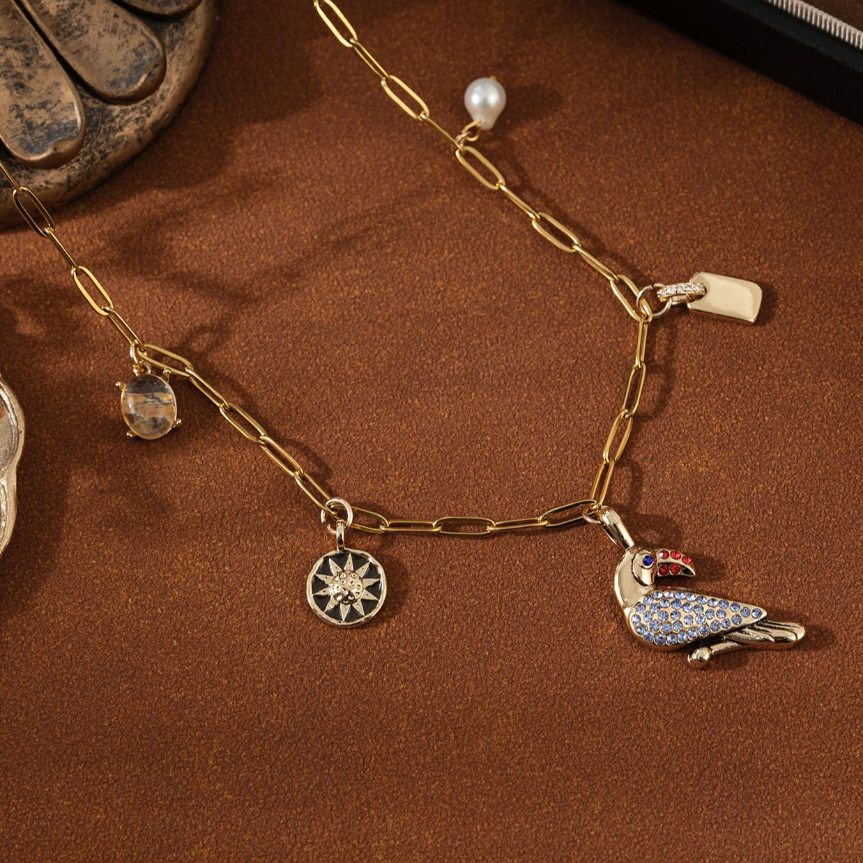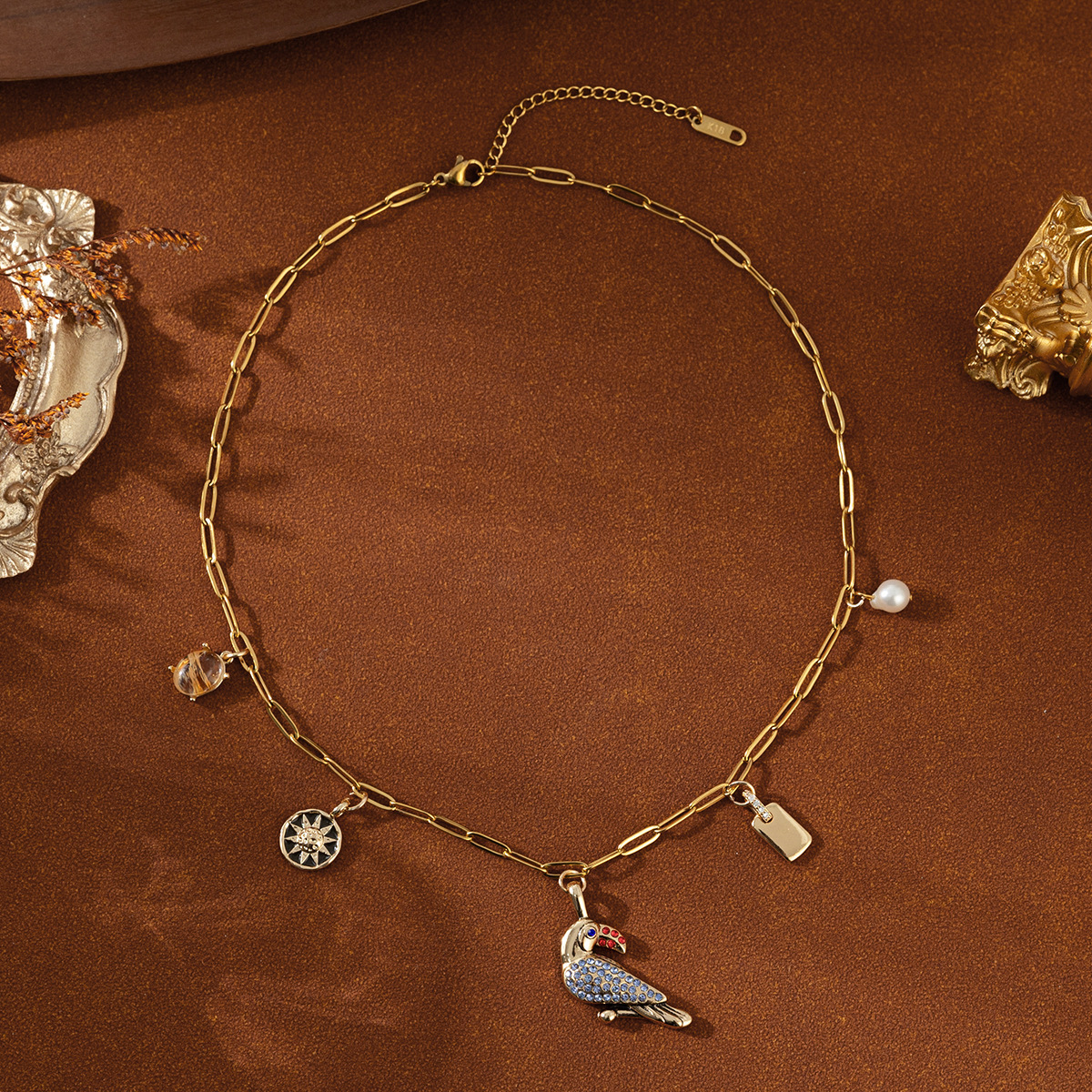 Color: Toucan individual pendant, Pearl individual pendant, square individual pendant, Sun individual pendant, oval zircon pendant, clip individual chain