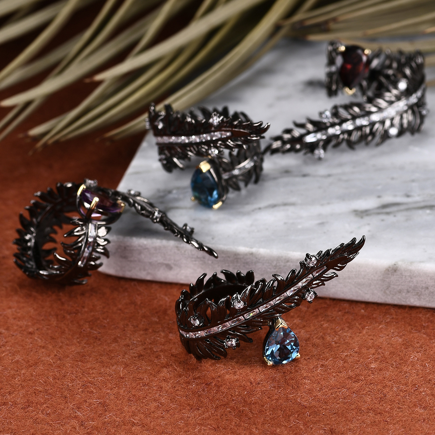 Color: natural garnet, natural amethyst, London blue topaz, Switzerland Blue Topaz