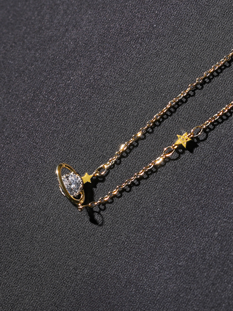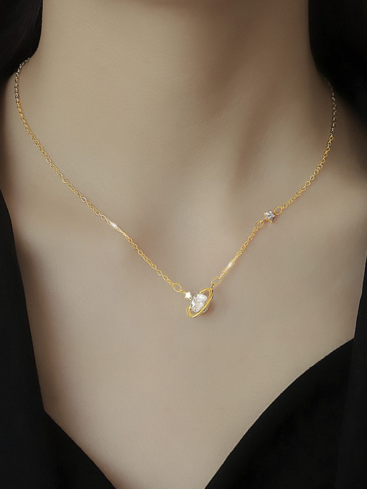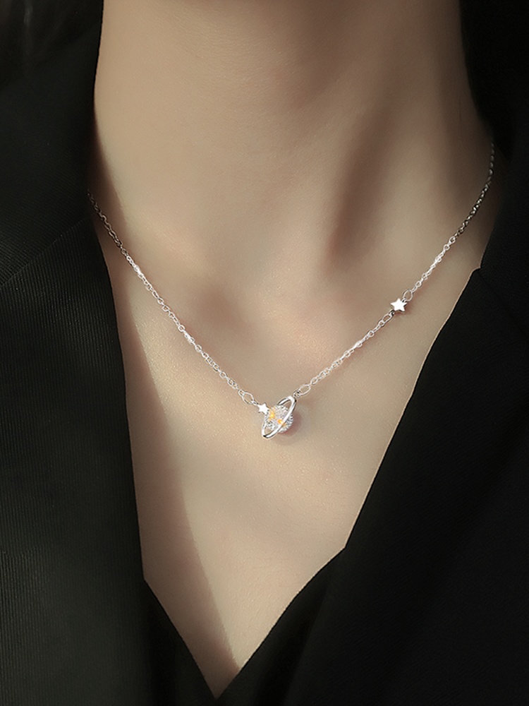 Product Information:Chain material: silverApplicable gender: FemaleColor classification: Planet Necklace Silver Planet necklace goldSize: Total chain length about 44CM (including 5CM extension chain)Packing list:Necklace * 1