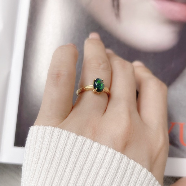 Women's Fashion Sterling Silver Inlaid Natural Opal Ring