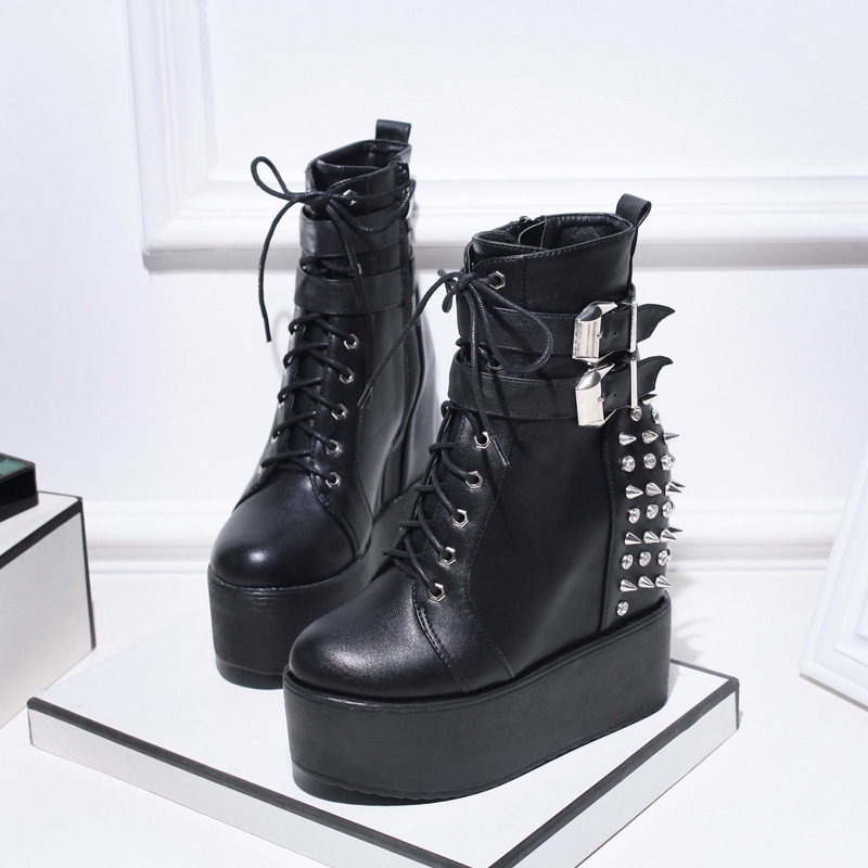 Product category: Martin bootsUpper Material: Artificial PUSole Material: RubberToe shape: round headHeel shape: Wedge heelHeel height: super high heel (above 8CM)Tube height: low tubeInsole material: artificial short plush