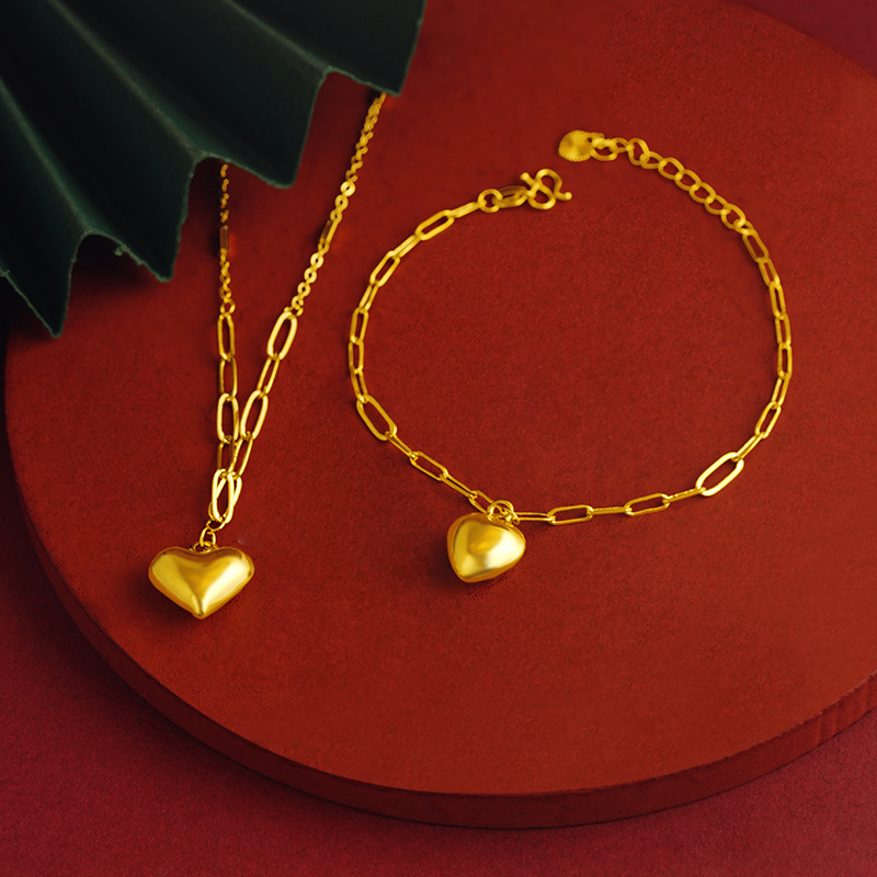 Product information:Treatment Process: Electroplating Color: S2165 heart bracelet, X2099 heart necklace Material: Copper Popular elements: Love/heart