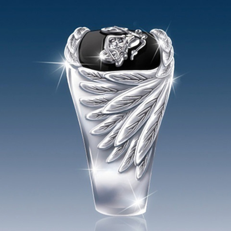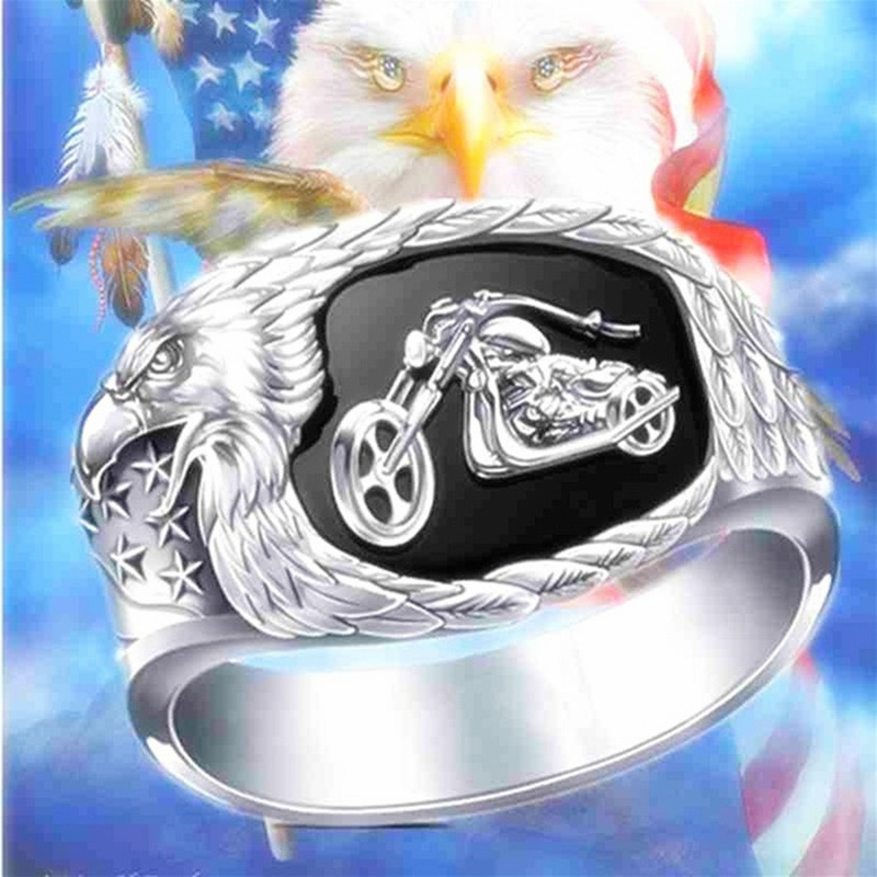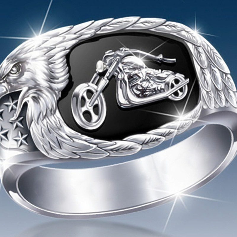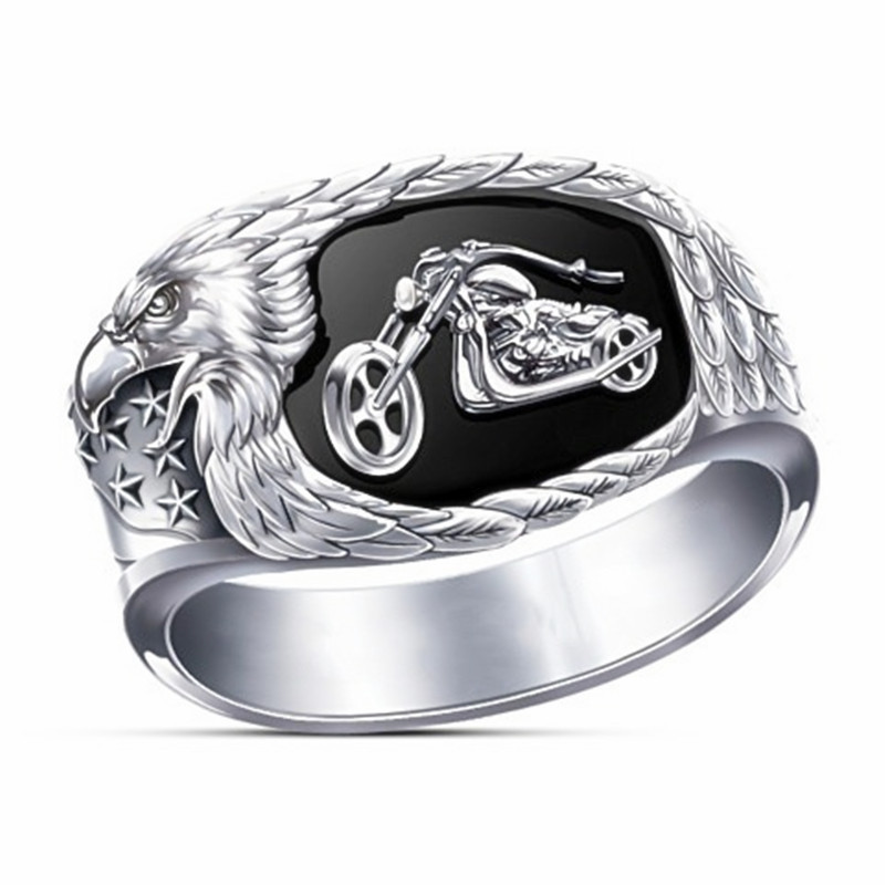 Hip-Hop Motorcycle Black Engraved Eagle Beak Ring