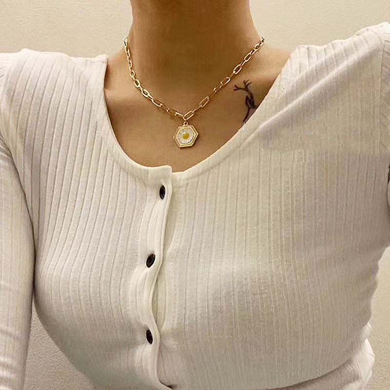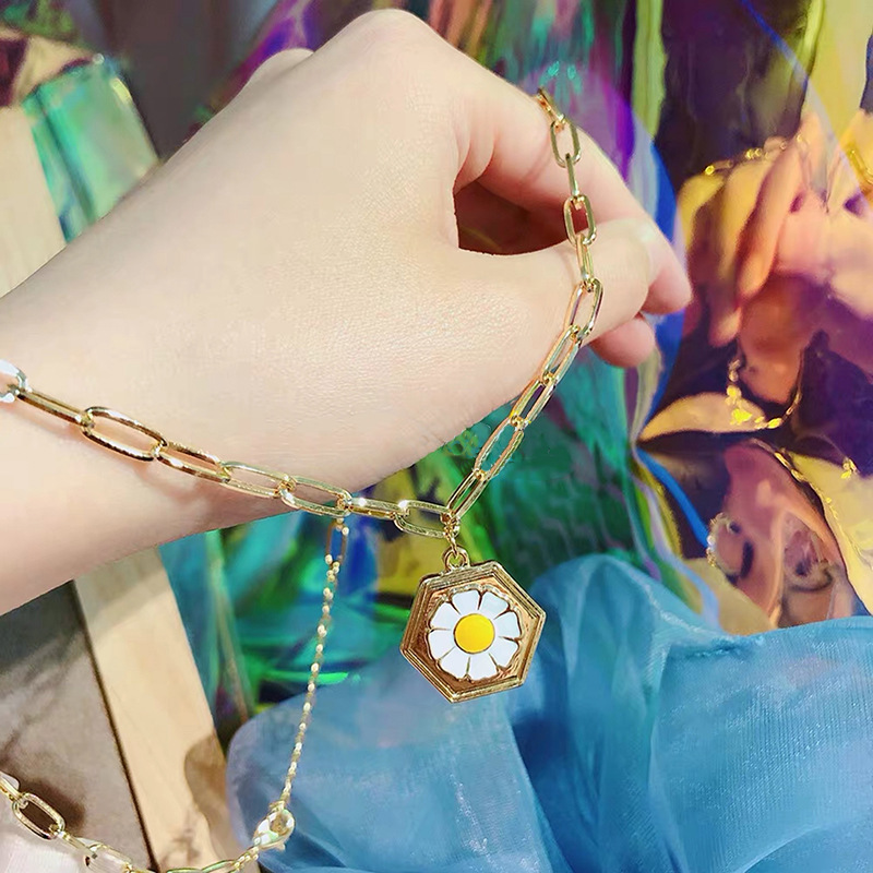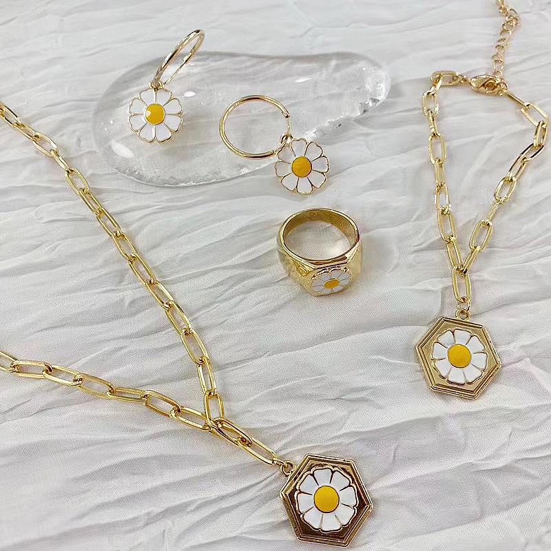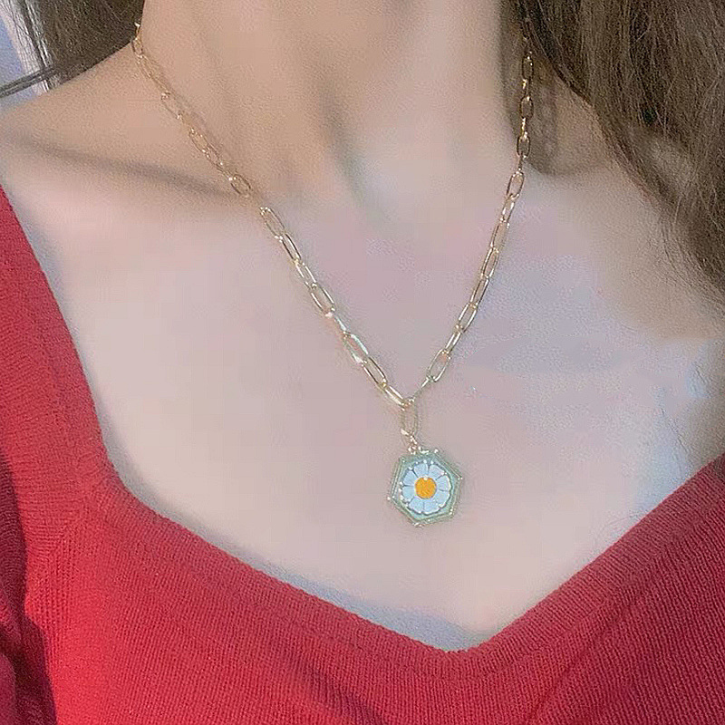 Material: AlloyTreatment process: dropping oilType: NecklaceStyle: WomenModeling: FlowersWith or without Pendant: YesExtension chain: less than 10cmPendant material: AlloyPerimeter: 51cm (inclusive) - 80cm (inclusive)Series: Daisy