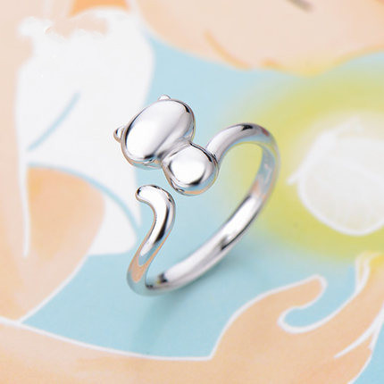 M: Strawberry Crystal Crooked Neck Kitten Ring,