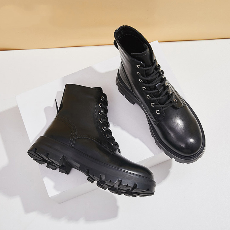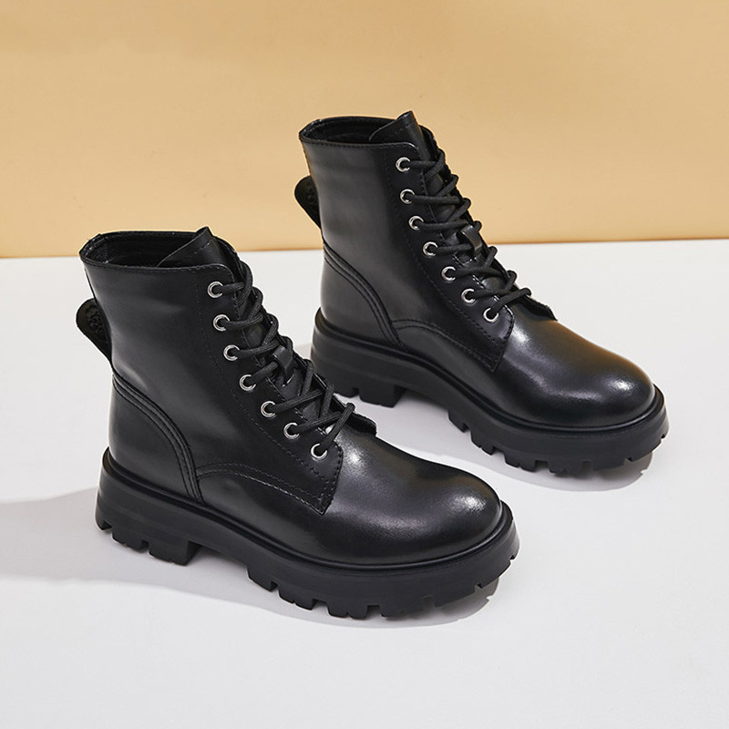 Specification:Material: Split layer cow leatherSize: 35-40Heel height: 4.5cmSole: RubberColor: Black, beigeToe: Round toeInside: PuPacking list:Boots*1 pair