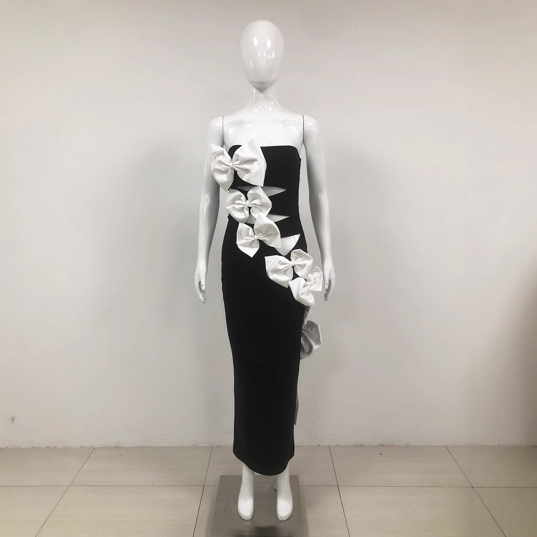 Product information:Pattern: Bow Skirt type: hip skirt Color: Black Waist type: high waist Size: XS,S,M,L Fabric name: Polyester Skirt Category: Dress