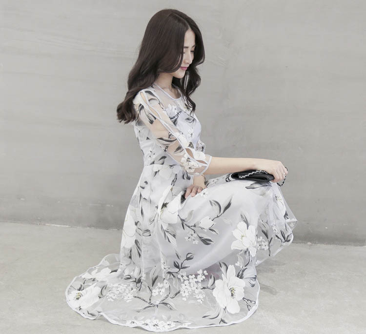 Color: gray, white flower, yellow flower