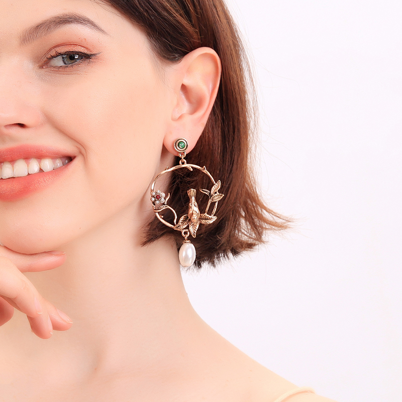 Small geometric bird earrings female