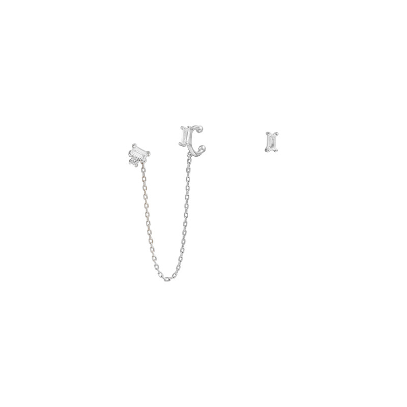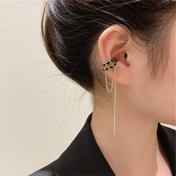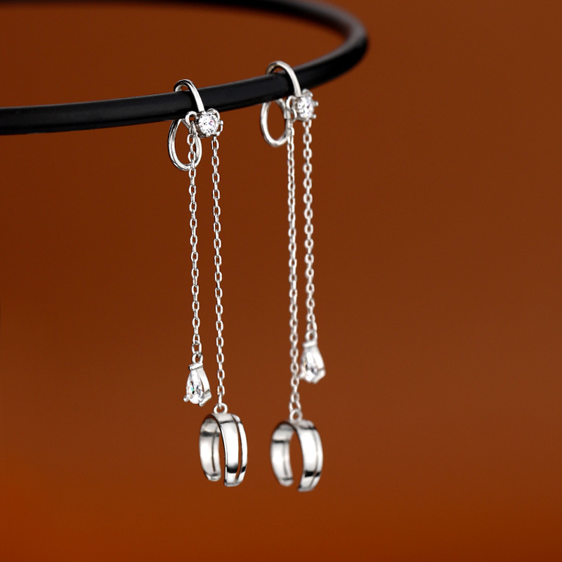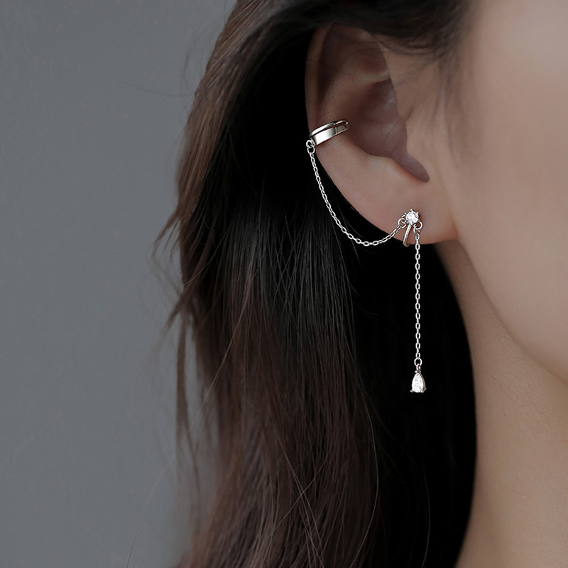 Colors: One pair (white gold), chain ear cuffs in real gold plated, one diamond drop tassel earring (white gold)