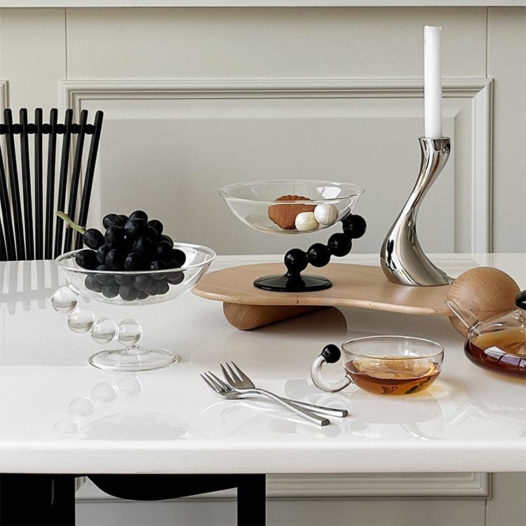 Material: glassStyle: fashion and simplicityFeatures: Heat resistantColour:Pearl Glass Bowl-Black, Pearl Glass Bowl-Clear, a set of 2