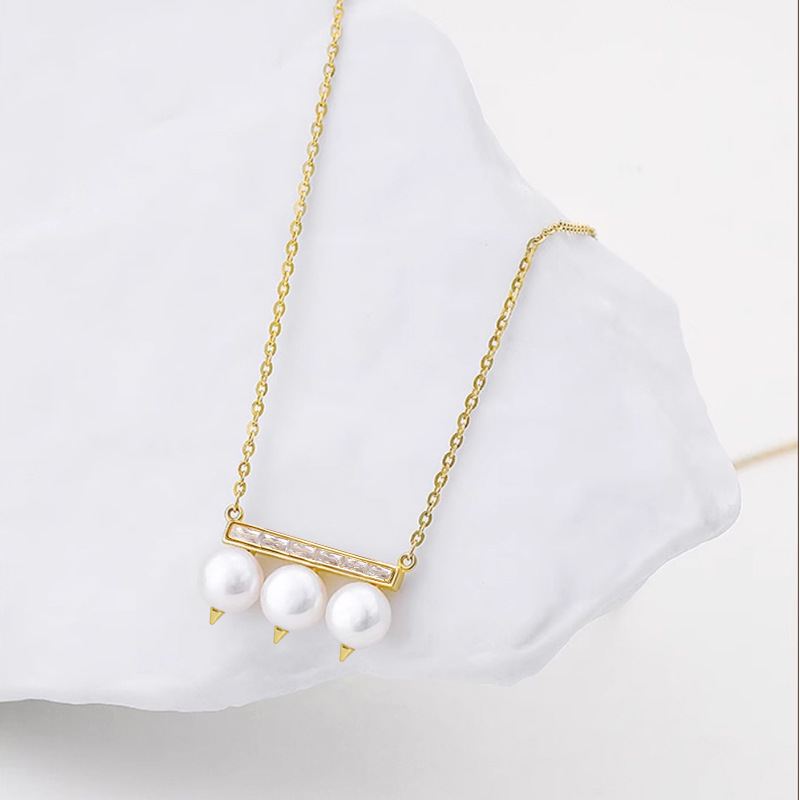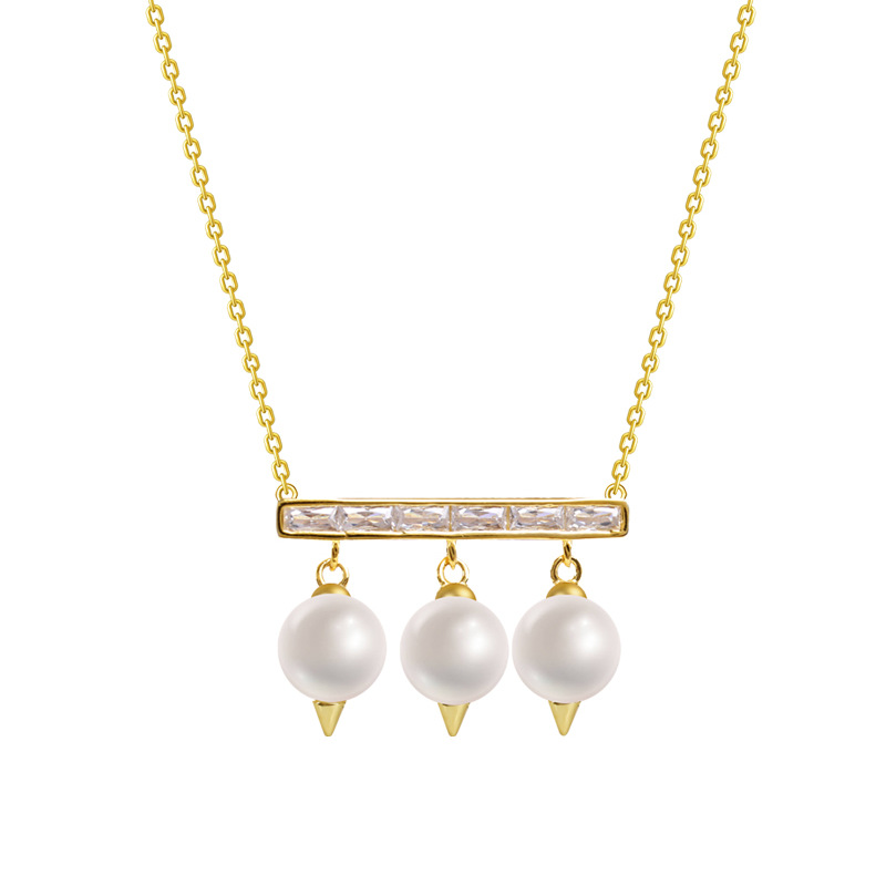 Color: zircon Pearl balance beam necklace gold, zircon Pearl balance beam necklace Silver
