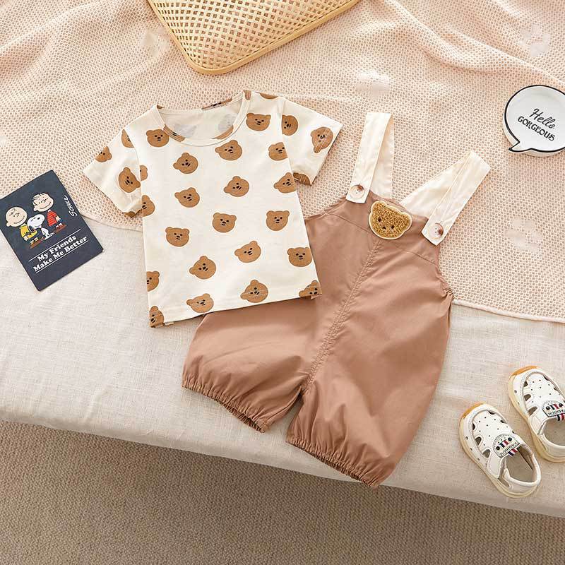 Product information:Fabric name: Cotton Color: Brown bear suspender pants suit, beige bear suspender pants suit Main fabric composition: Cotton Suitable height: 59cm,66cm,73CM,80cm,90cm