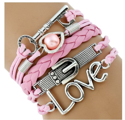 Bracelet Key Belt Buckle love Pearl Alloy Accessories Handmade Multilayer Braided Bracelet