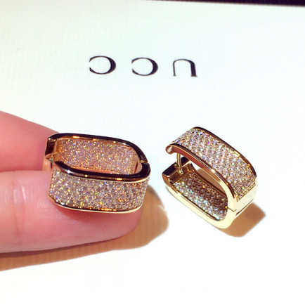 Product information:Treatment Process: inlaid zircon Color: gold, silver Material: Copper Shape: Geometry Size: About 2 * 0.8CM
