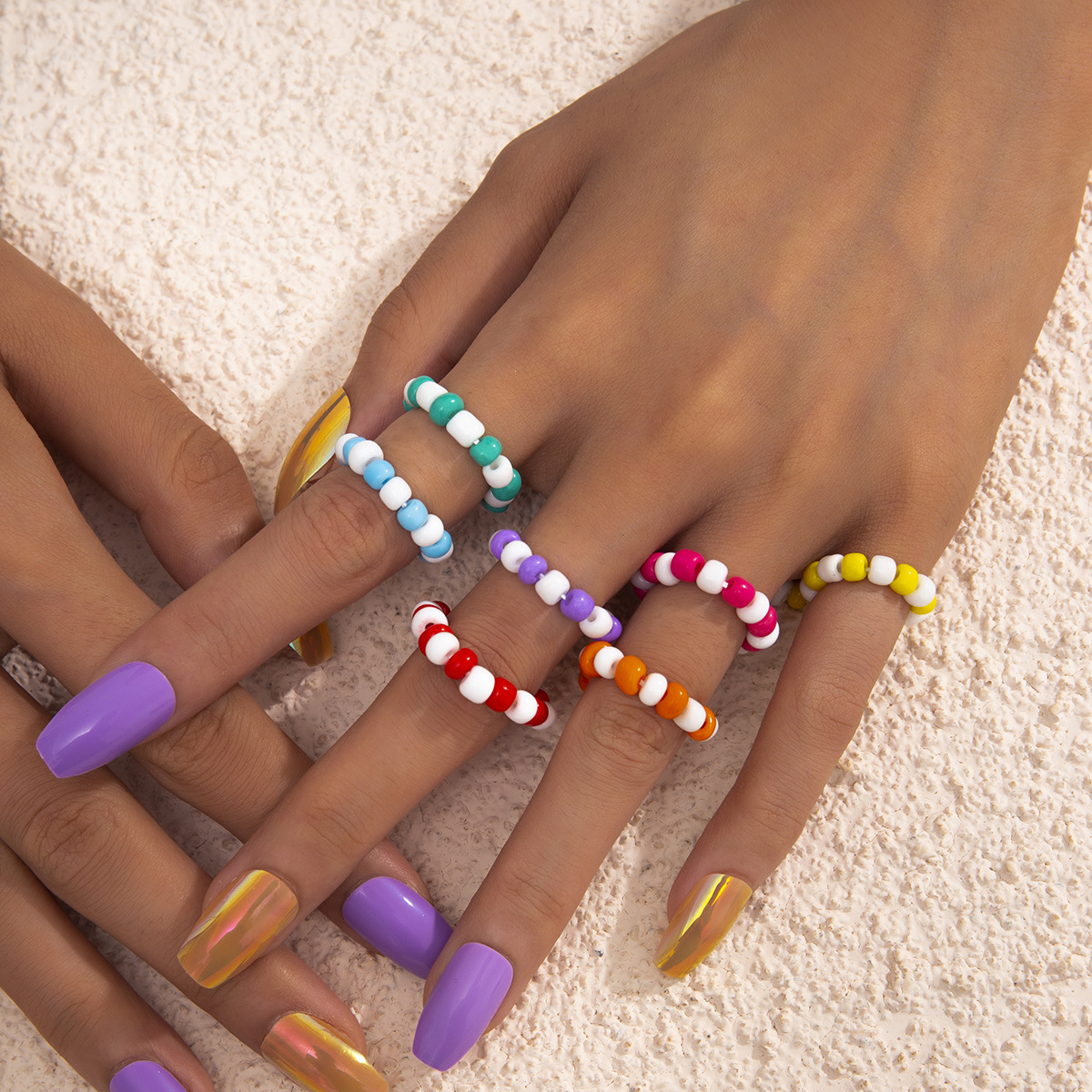 Product Information:Type: RingMaterial: rice beadsModeling: geometricStyle: Women'sInlaid material: not inlaidColor: mixed color 2361Packing List:Rice bead ring x7