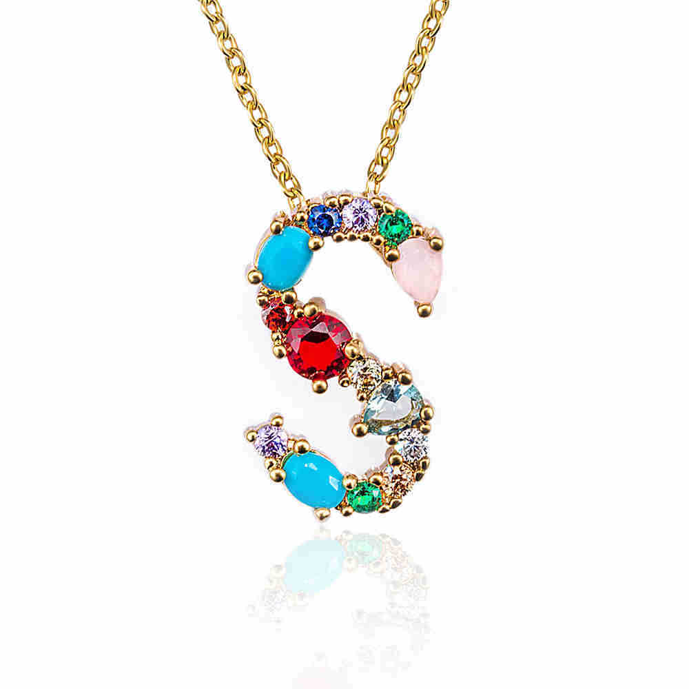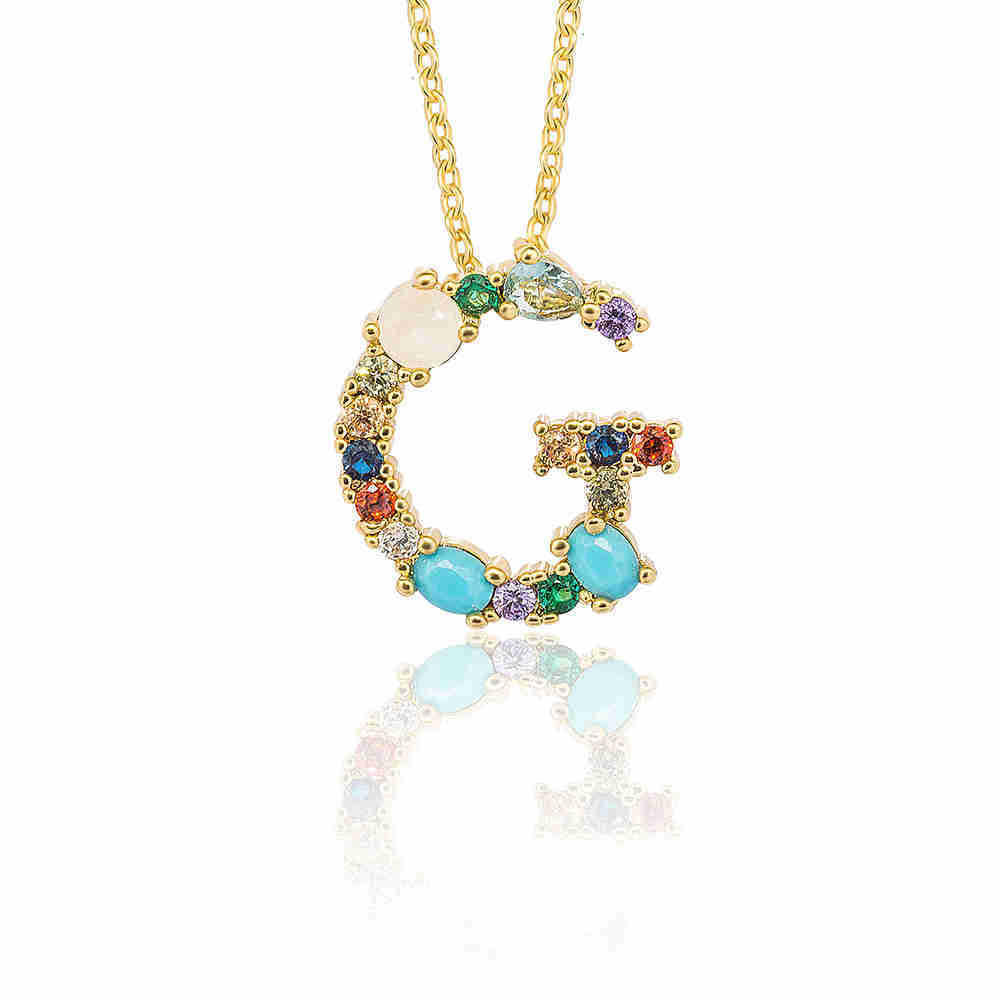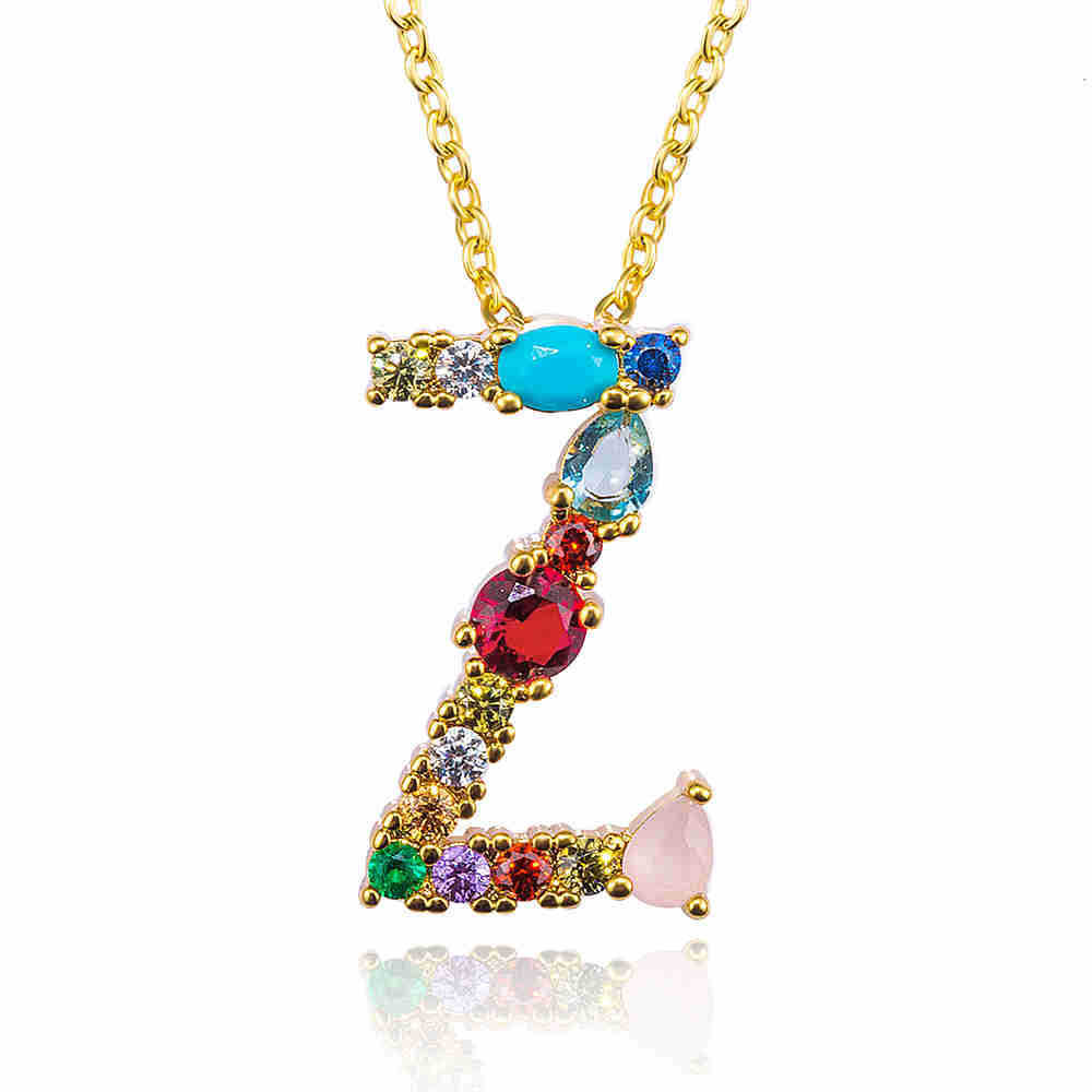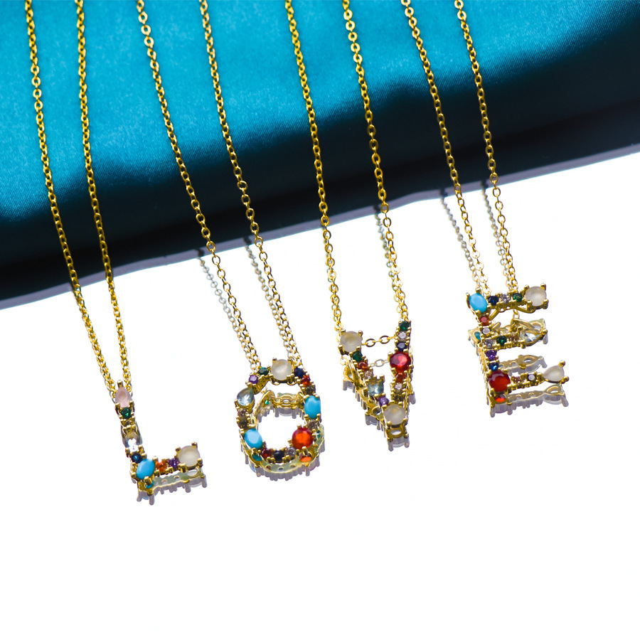 Hip Hop 26 Letters Copper Micro Inlaid Letter Pendant Clavicle Chain