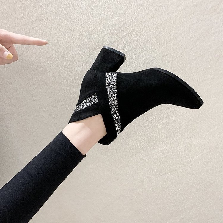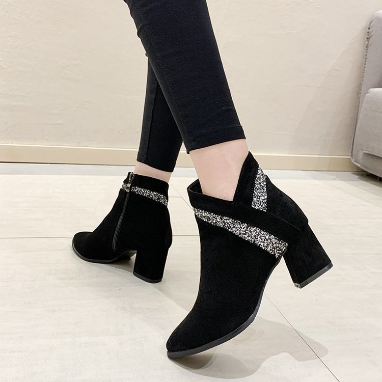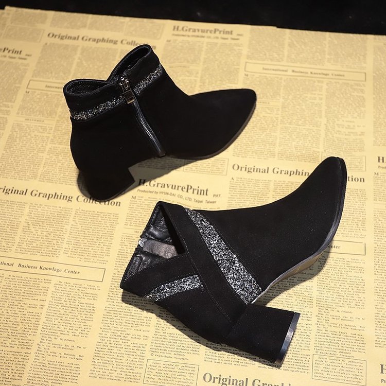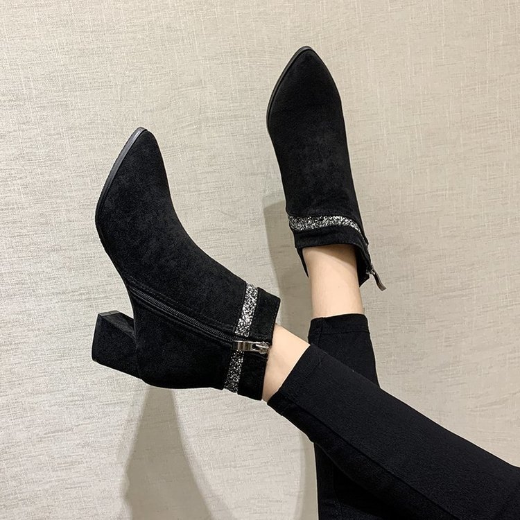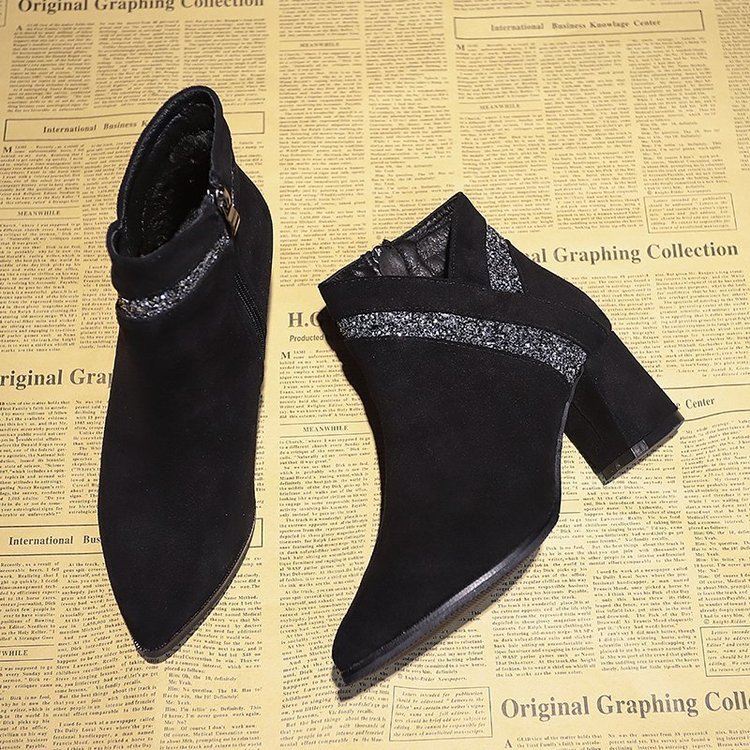 Toe shape: pointedHeel shape: thick heelHeel height: low heel (1-3CM)Function: Keep warmTube height: low tubeThickness: thickerWearing style: side zipperInsole material: artificial wool