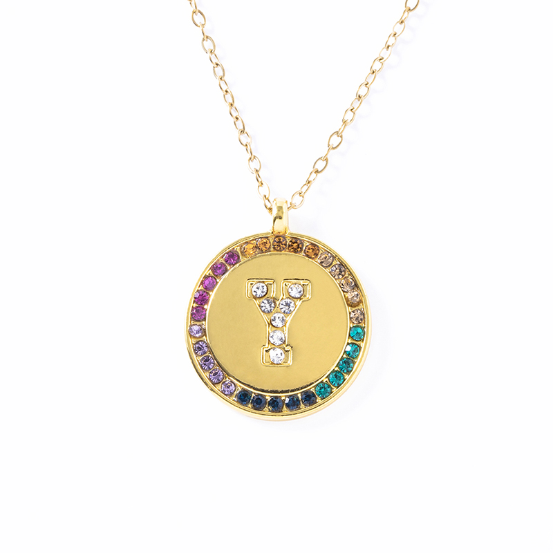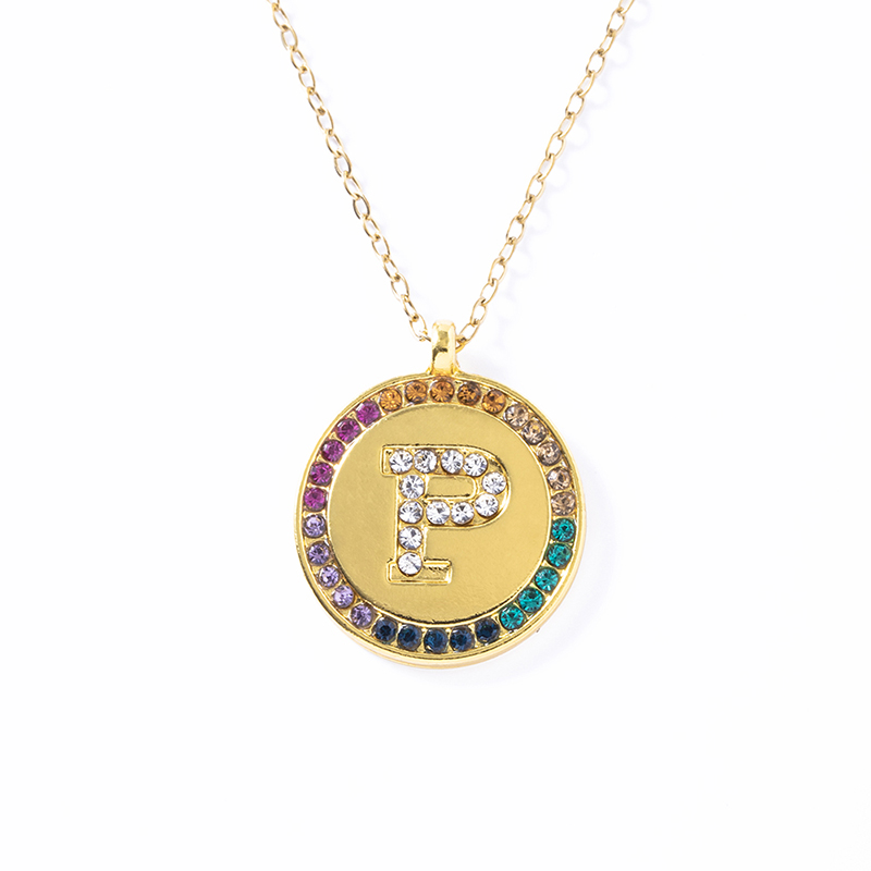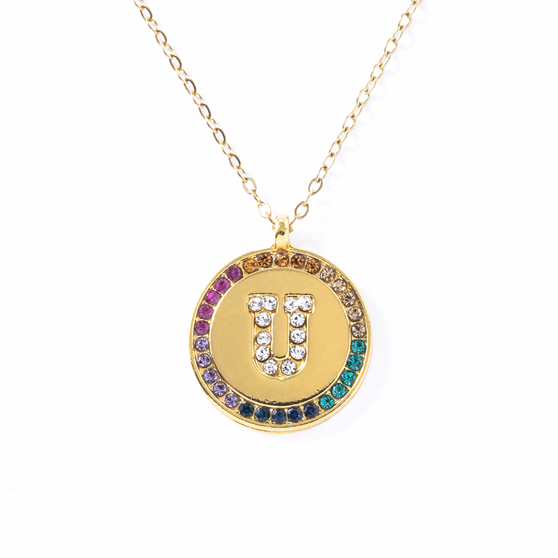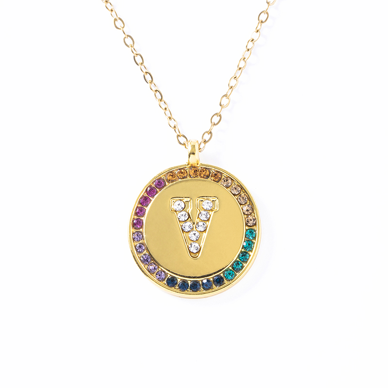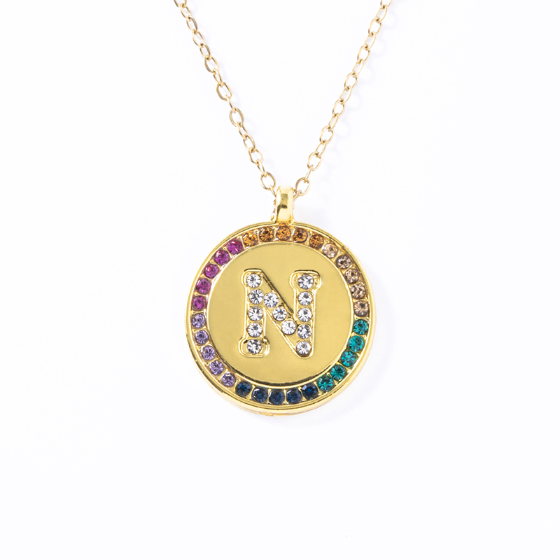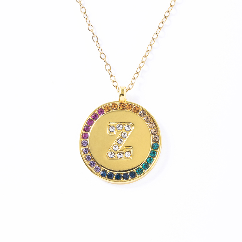 2023 New A-Z Letters Colorful Crystal Necklace Gold Round Stainless Steel Pendant Necklace