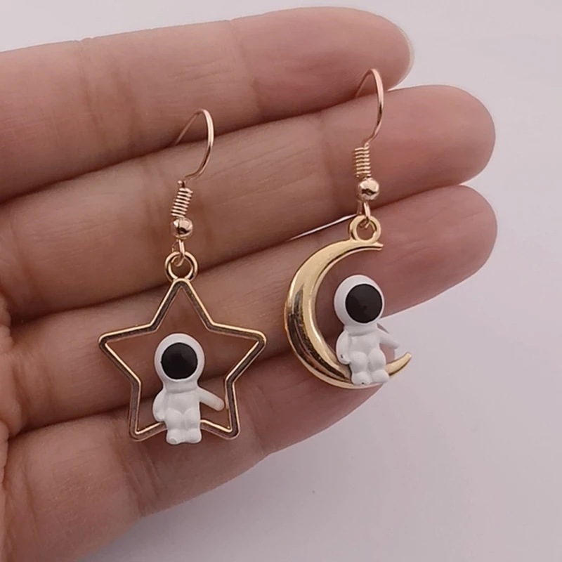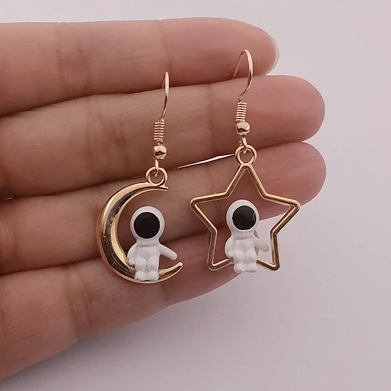 Specification:Name: Asymmetric astronaut hanging earringsMaterial: AlloyPendant size: 24+21.5mm/22.5+18mmStyle: Europe and americaPacking list: