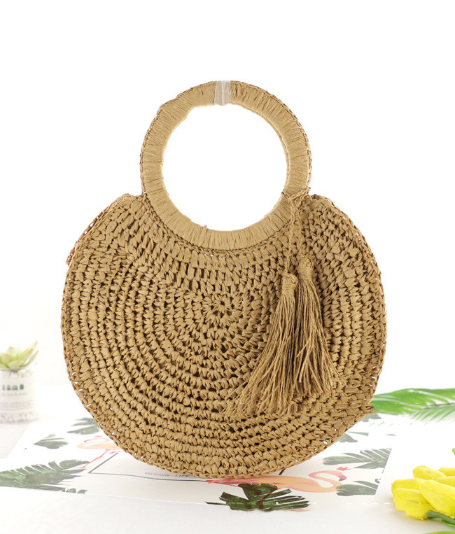 Product Information:Style: Women's handbagBag shape: roundOpening method: zipperHardness: softNumber of shoulder straps: no shoulder strapsColor: beige, light brownSize: Round Diameter: 35*27CM, Middle Height: 16CM, Bottom Thickness: 10CM