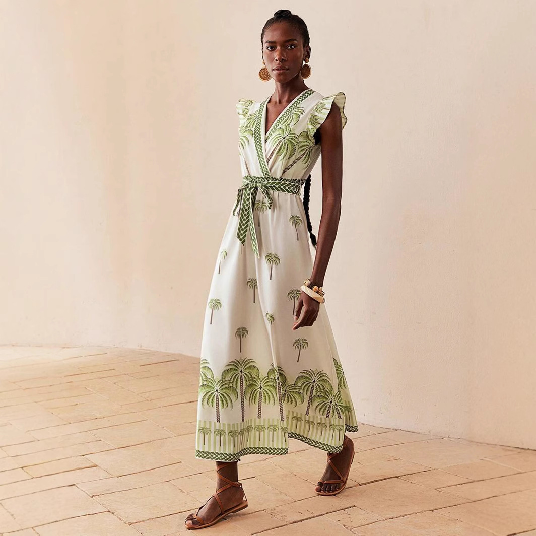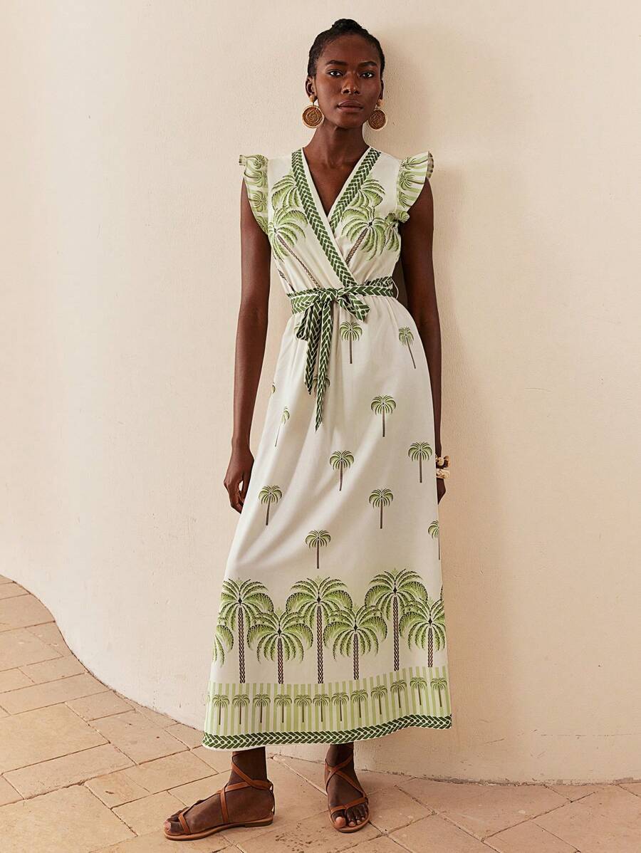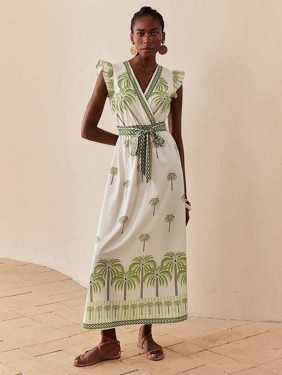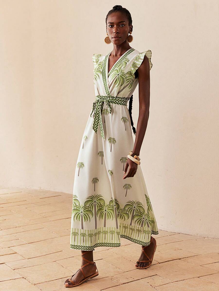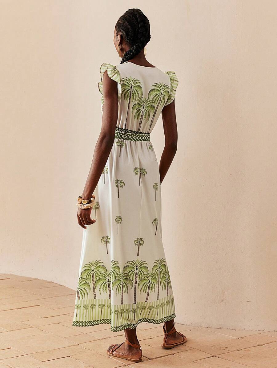Product information:Pattern: plants and flowers Skirt type: A- line skirt Color: green Waist type: high waist Size: S,M,L,XL Fabric name: Polyester Skirt Category: Dress