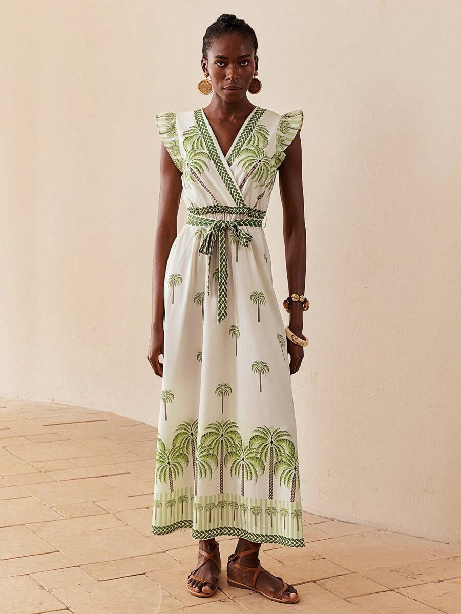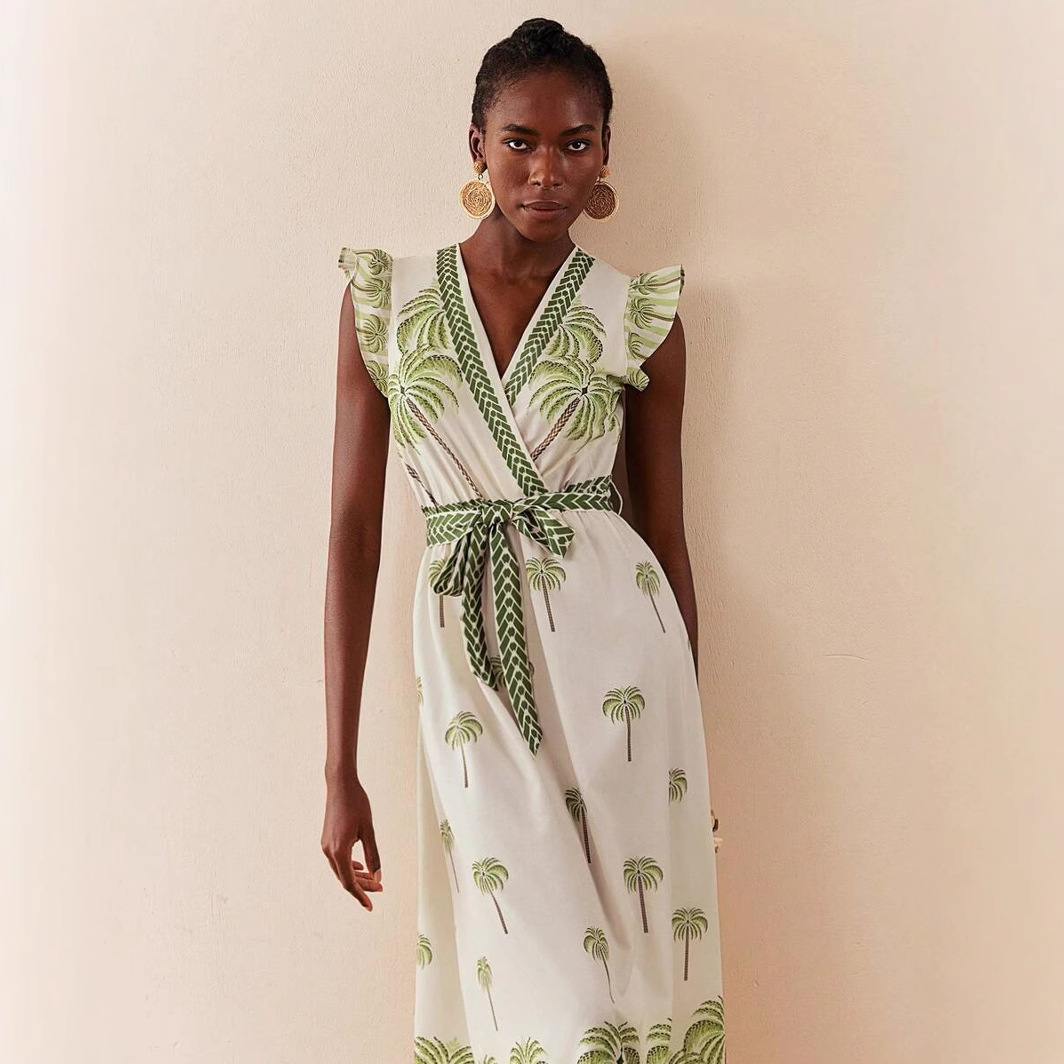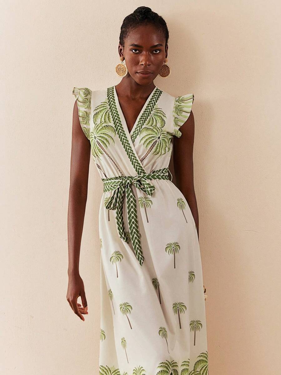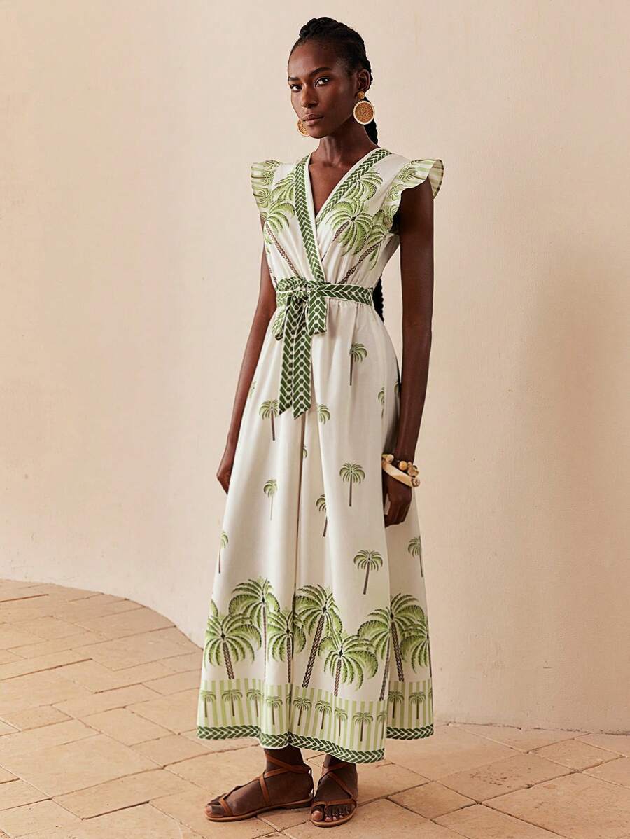 Product information:Pattern: plants and flowers Skirt type: A- line skirt Color: green Waist type: high waist Size: S,M,L,XL Fabric name: Polyester Skirt Category: Dress