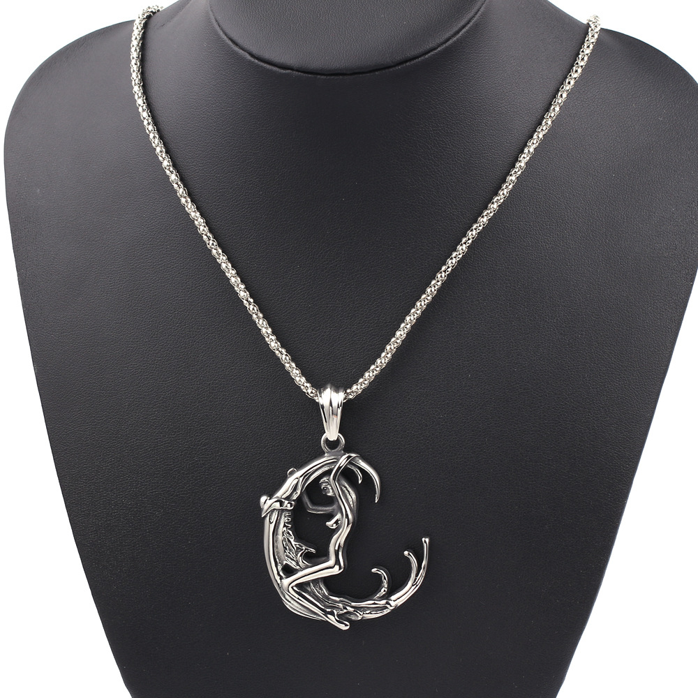 Product material:Material: AlloyDetails:Treatment process: ElectroplatingType: NecklaceStyle: UnisexStyling: Moon womanPackaging: Individually packedChain style: Snake bone chain