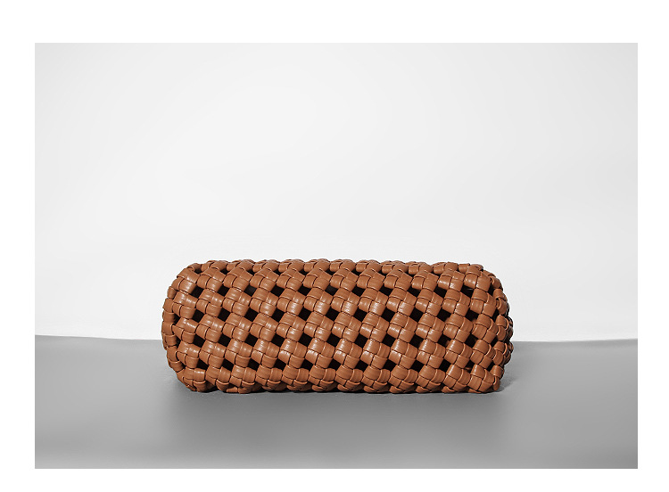 Color: caramel, black, apricot, light blue, off-white.