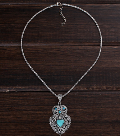 Pattern vintage earrings necklace diamond carving turquoise jewelry hollow