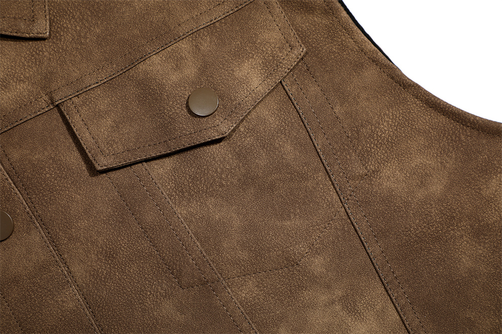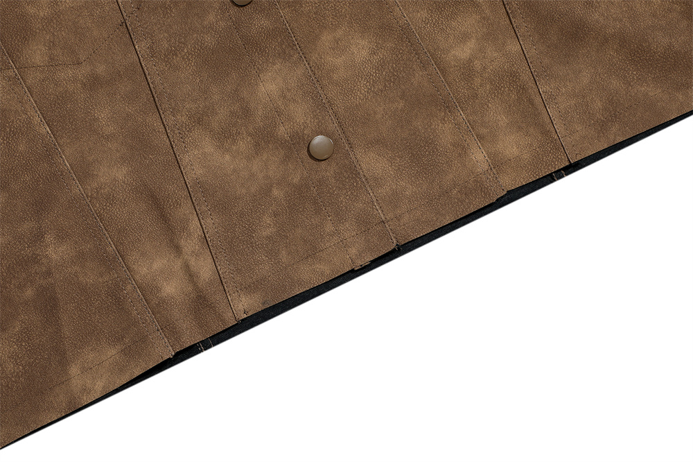 Product information: Pocket Style: bag cover slit pocket Color: Black, Brown Size: M,L Style: Cardigan Fabric name: PU leather Applicable scenarios: Leisure Lower hem design: straight hem Style: street fashion Craft: collage/stitching