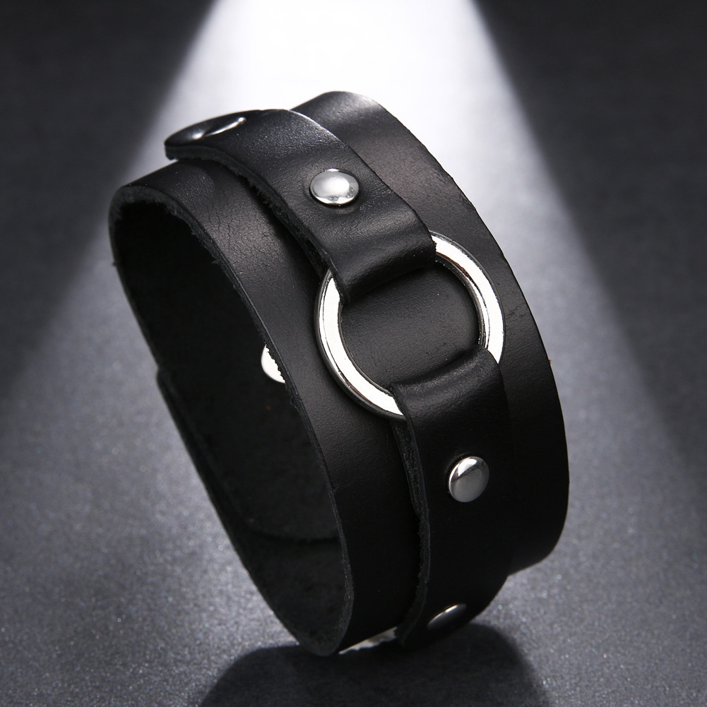 Product information:Material: leatherModeling: GeometryHealth function: anti-fatigueInlaid material: not inlaidColor: black, brownPopular elements: sequinsPacking ListLeather bracelet *1