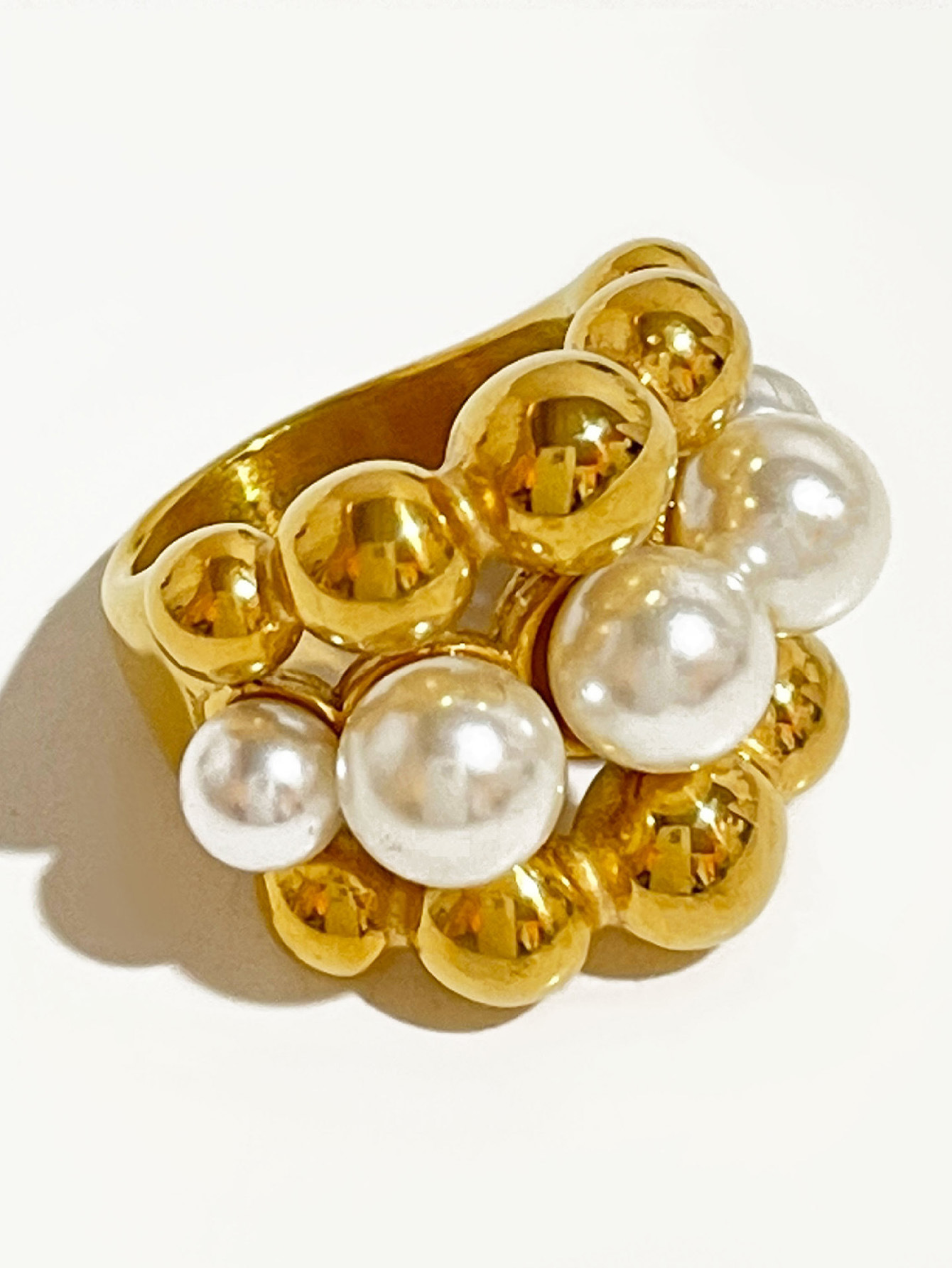 Product information:Type: Ring, ring Color: Gold Applicable population: Female Size: no.7, no.8 Style: Imitation Pearl Material: Stainless steel Shape: Geometry
