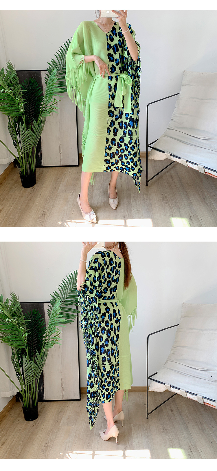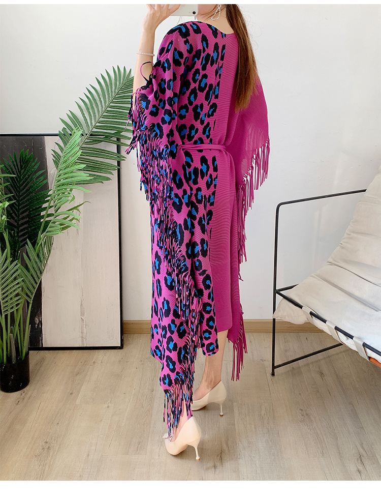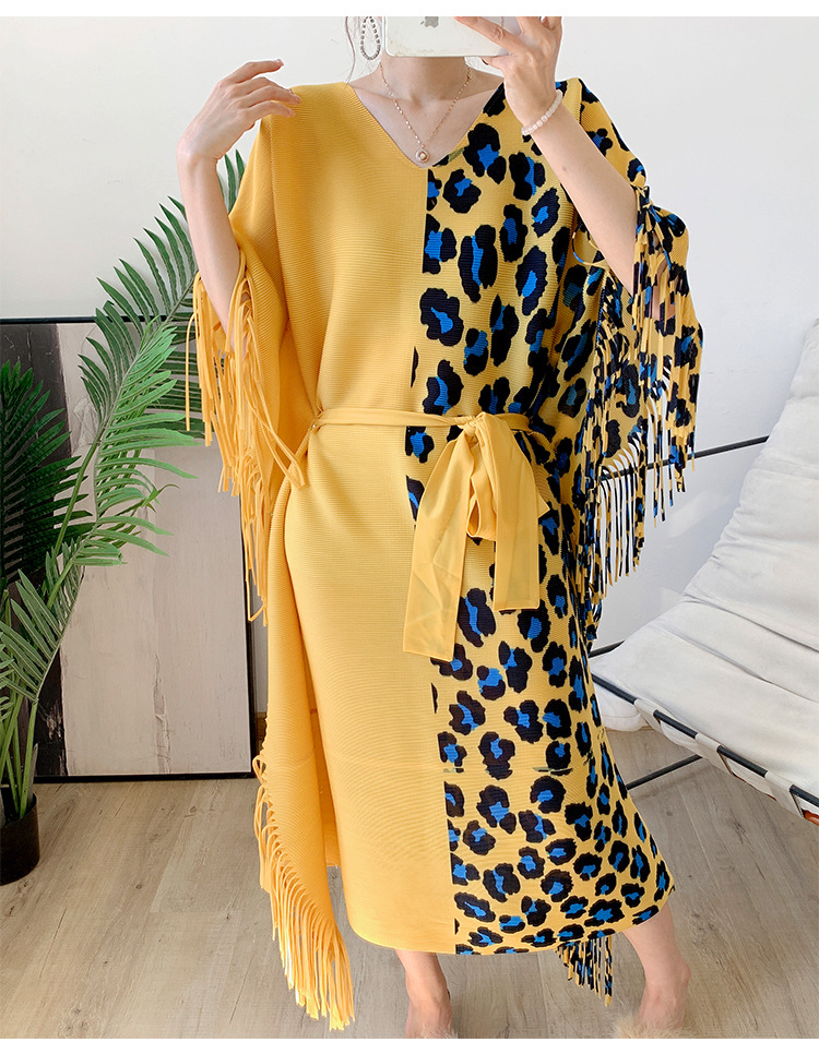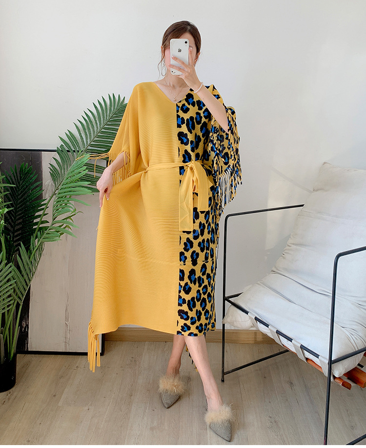 Autumn Women's Pleated Leopard Print Color-matching Dress