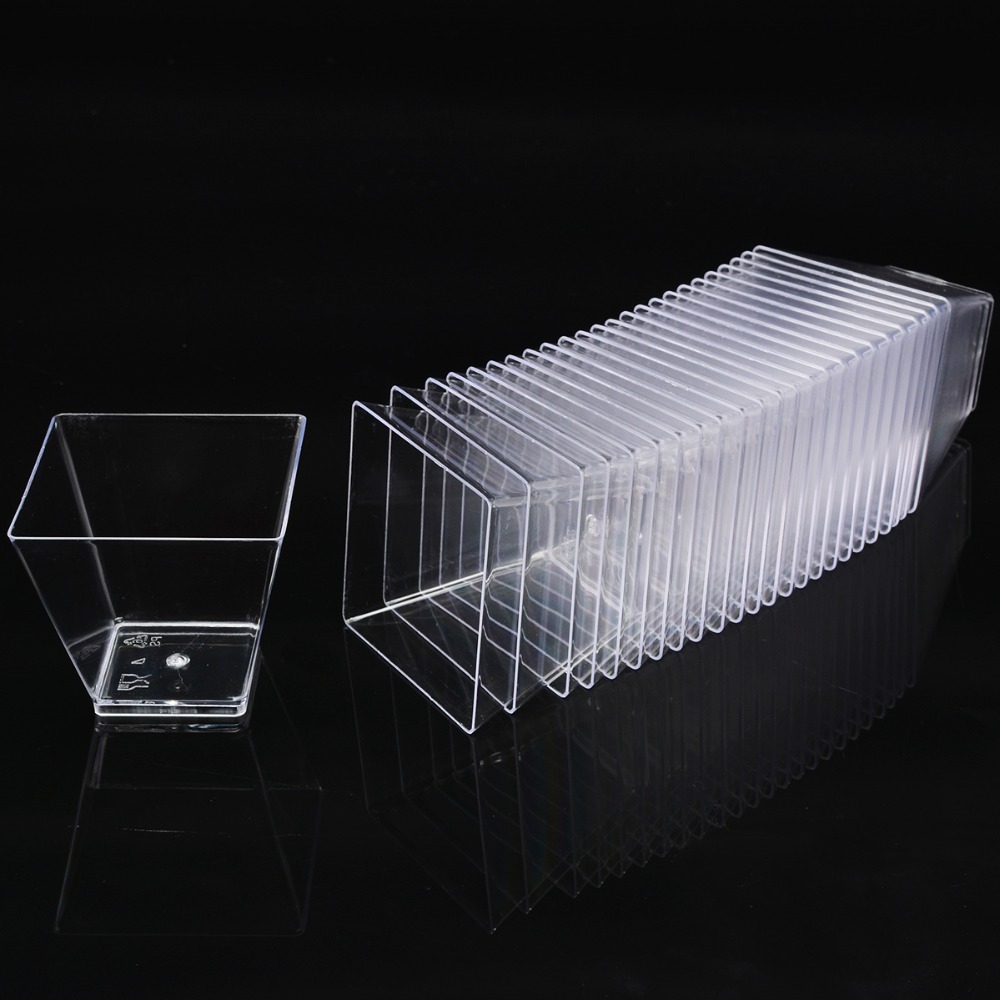 Material: PSProduct weight: 5.1g/pieceProduct size: cup mouth length 5 cup bottom length 2.8 height 4.5cmProduct capacity: 60ml/2oz