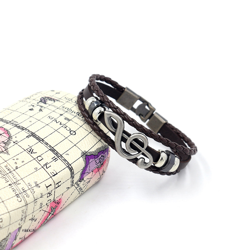 Name: Vintage Alloy Note Cowhide BraceletStyle: retro, fashionable, personalizedMaterial: cowhide+alloyCraftsmanship: HandmadeColor: black, brownSize: Approximately 21cm in length