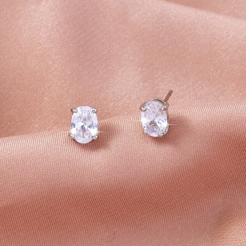 Temperament All-match Micro-inlaid Niche Gemstone Oval Zircon Earrings