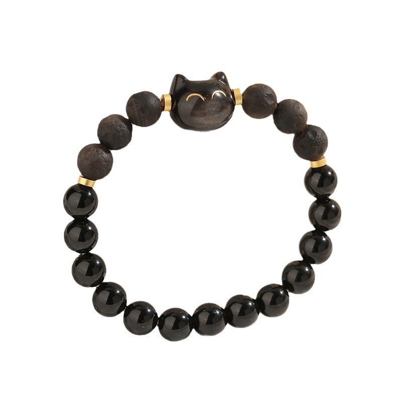Product information:Treatment Process: Polishing Color: Obsidian 8mm Applicable people: Unisex Material: Obsidian Modeling: animal/Zodiac Popular elements: Cat