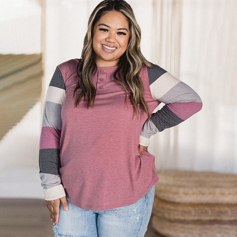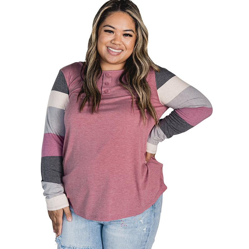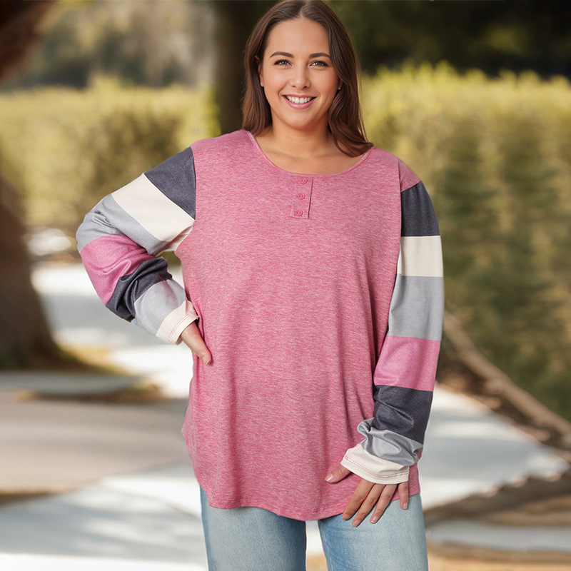 Popular elements: sleeve contrast color round neck fastener decoration pullover T-shirt