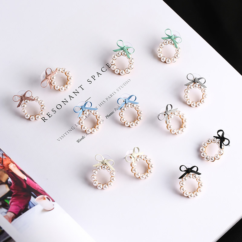 Material Alloy Style Korean Korean/Korean Style Style women's style bow knot treatment process plating Applicable gifts occasions Birthday, advertising promotion, anniversary celebration, public relations planning, trade fairs, festivals, employee benefits, housewarming, opening ceremony, travel commemoration, awards commemoration, wedding, business gifts packaging independent packaging processing customization Inlay material Alloy inlaid artificial gemstone / semi-precious stone Color A black, B gray, C beige, D pink, E blue, F green