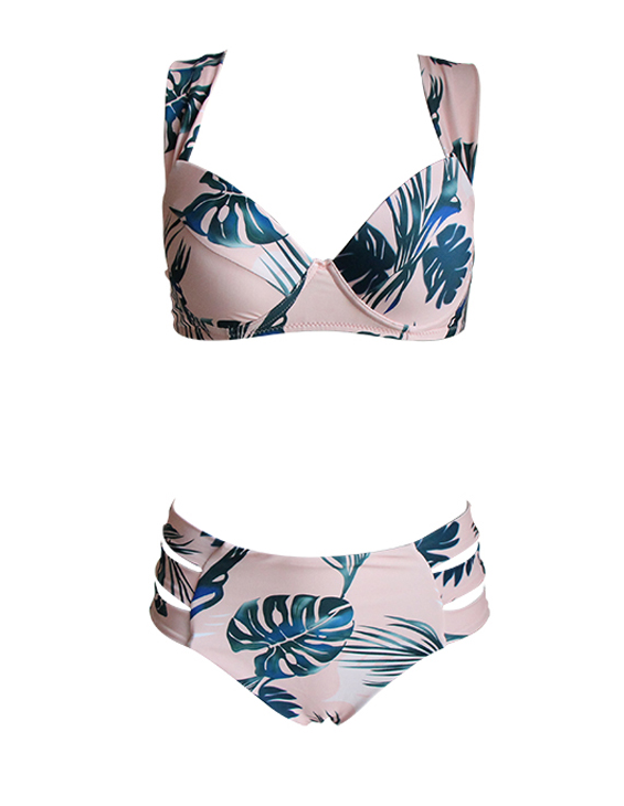 Green Leaf Feather Band Steel Bracket Split Thin Bikini