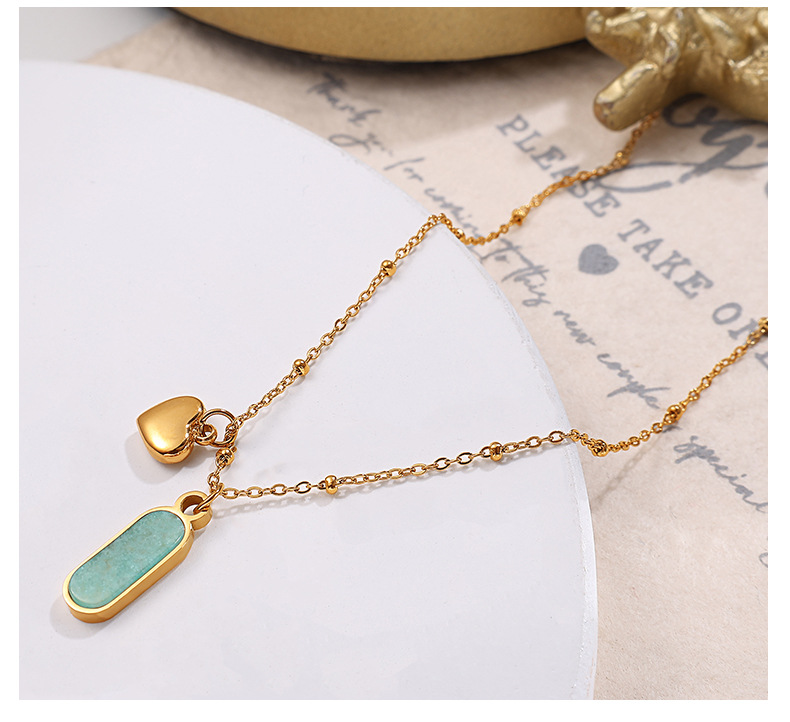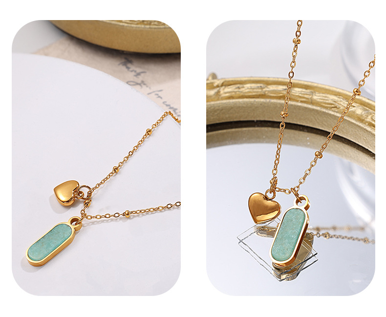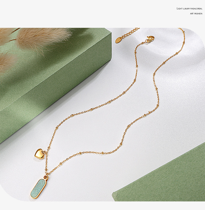 Product information:Color: XL404GNG green amazonite gold necklaceApplicable people: womenPendant material: titanium steelChain style: Regular chainMaterial: titanium steelShape: GeometricPopular elements: EllipseStyle: ins style