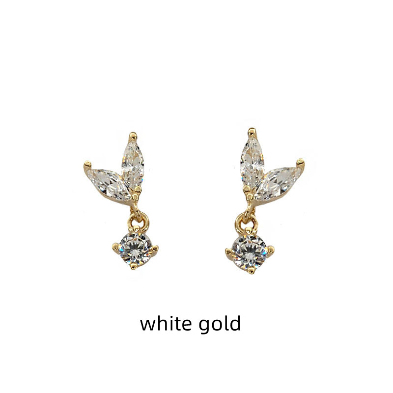 Color: Small Leaf Stud Earrings - White Gold, Small Leaf Stud Earrings - Gold