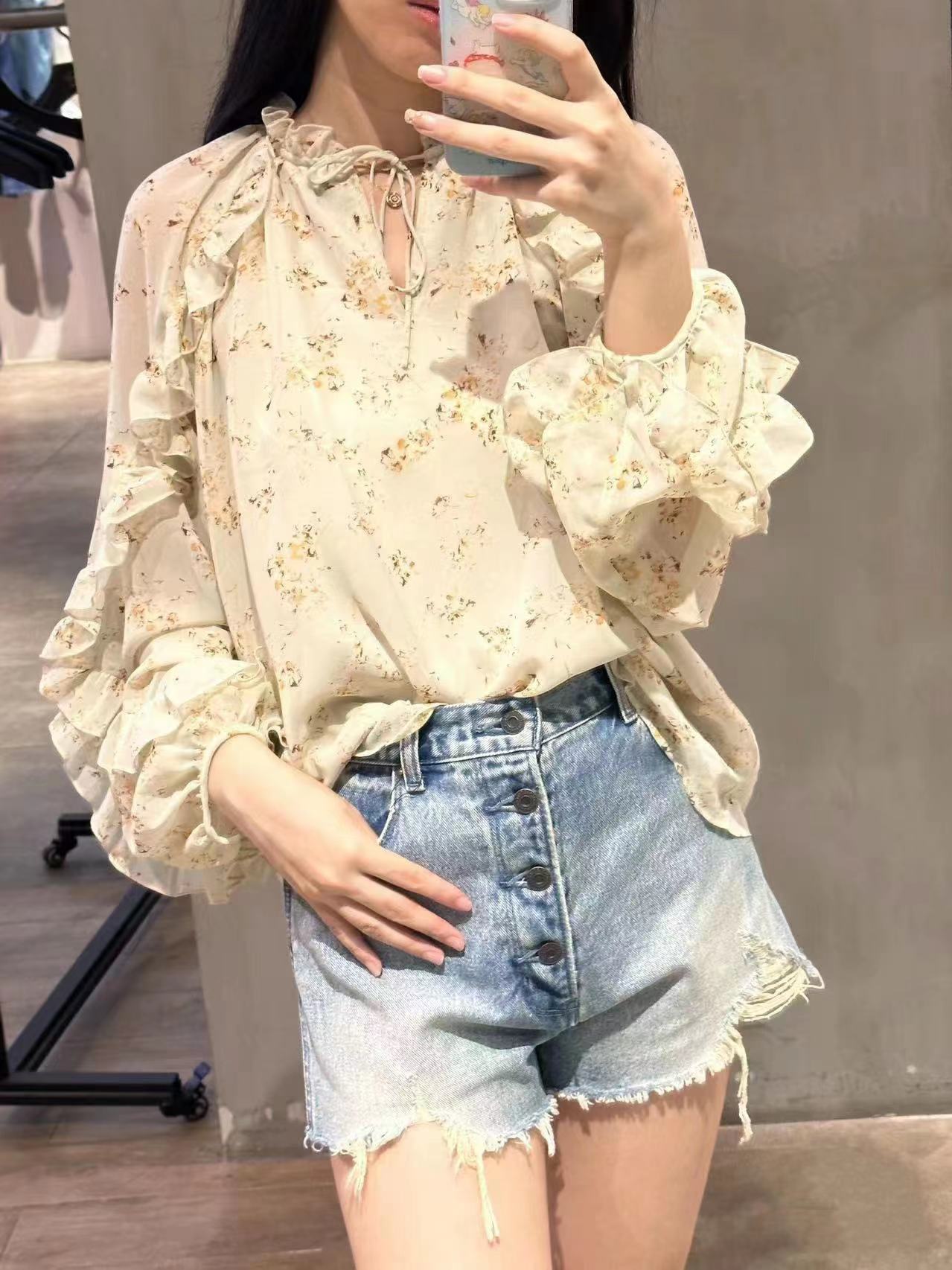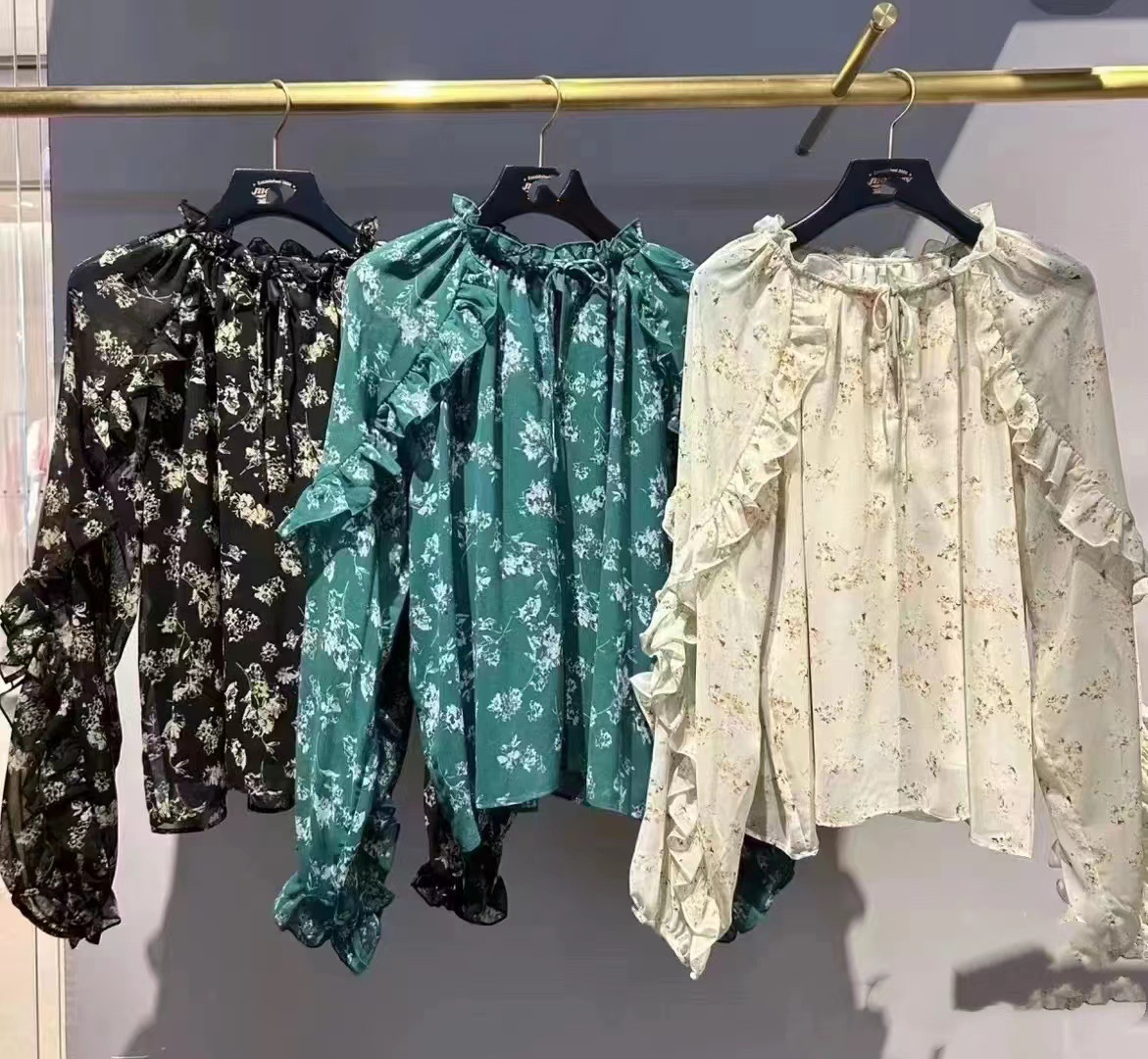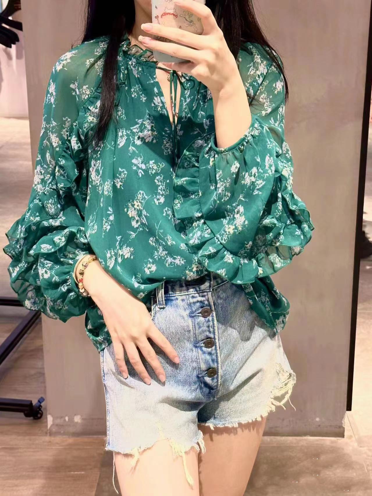 Product information:Pattern: Flowers Fabric name: chiffon Color: Milky White, green, black Main fabric composition: Polyester Size: free size Version: Loose Applicable Gender: Female
