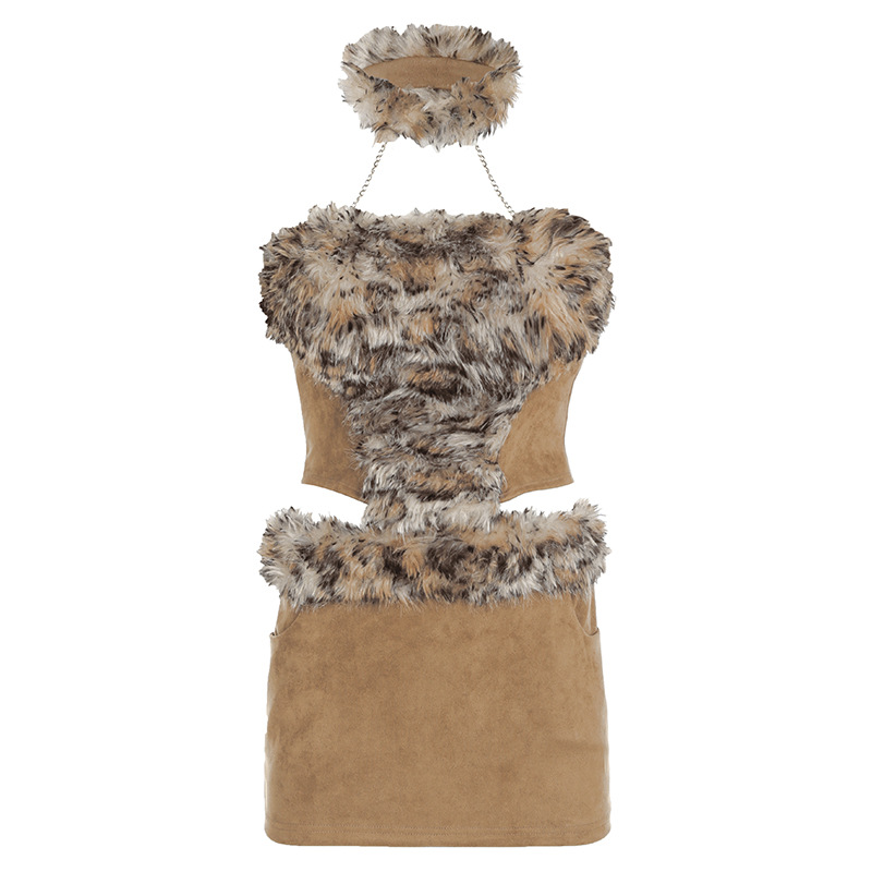 Product information: Pattern: Leopard print Color: Brown chest wrap, brown skirt, suit Size: S,M,L Style type: Street hipster Popular elements: contrast color Style: pullover Fabric name: suede + Plush Main fabric composition: Polyester