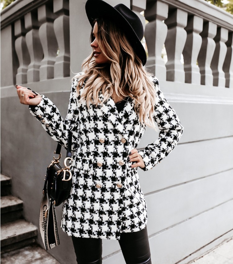 Color: black and white grid, houndstooth grid, khaki grid, blue, big black grid