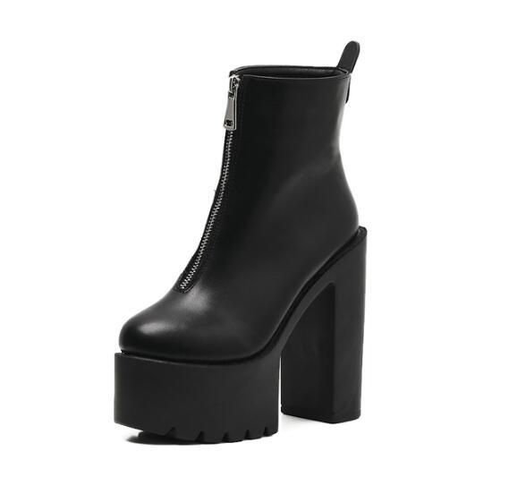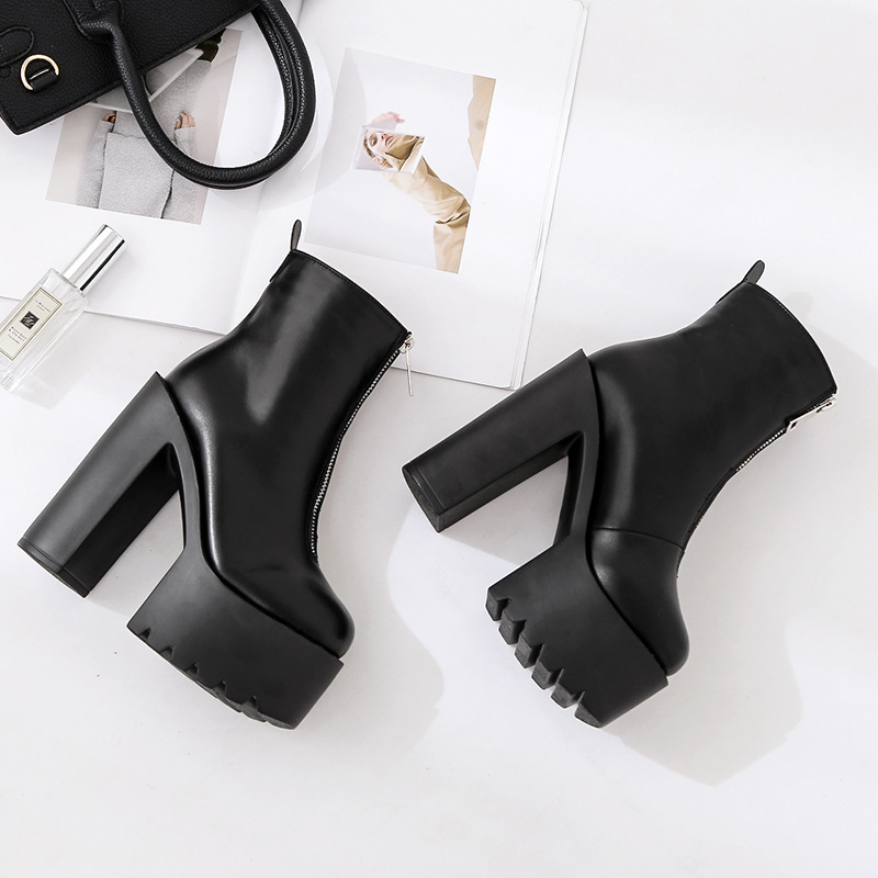 Help surface material: PU Upper lining material: two layers of pigskin Sole material: composite bottom Boots Name: Fashion Boots Tube height: short tube Toe style: round head Heel height: super high heel (greater than 8cm) With the bottom style: thick with Closed way: side zipper Popular elements: waterproof platform